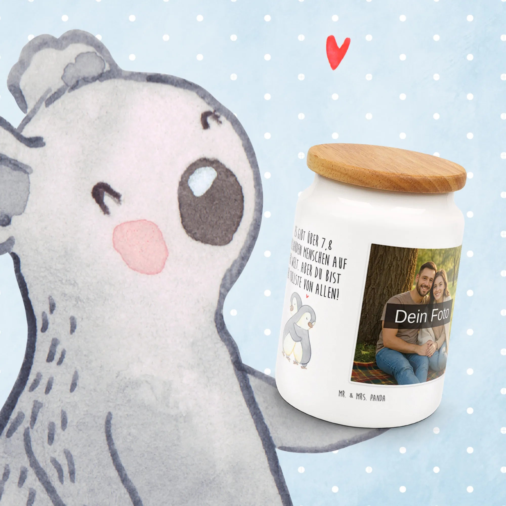 Spersonalizowane pudełko na zdjęcia pingwiny Przytulanie
