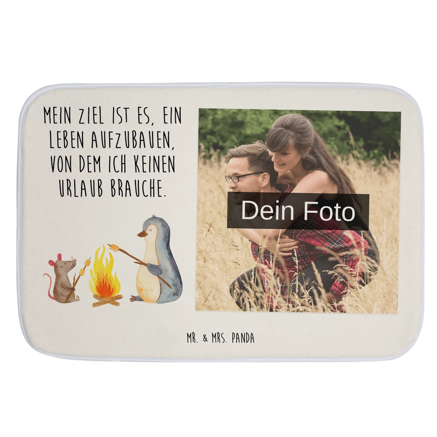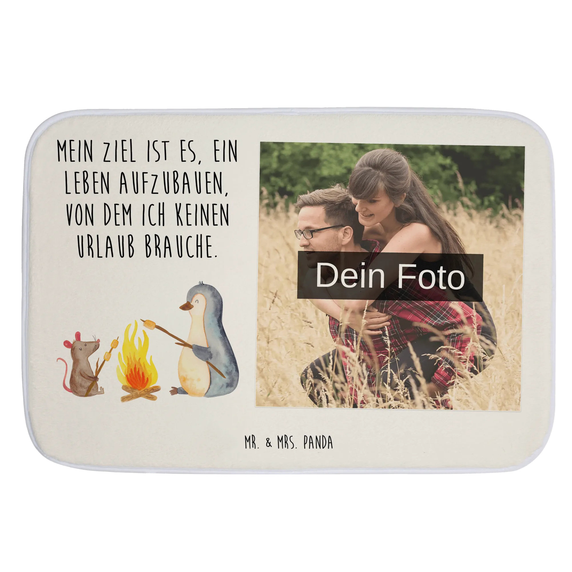 Personalisierte Foto Badematte Pinguin Lagerfeuer – Mr. & Mrs. Panda