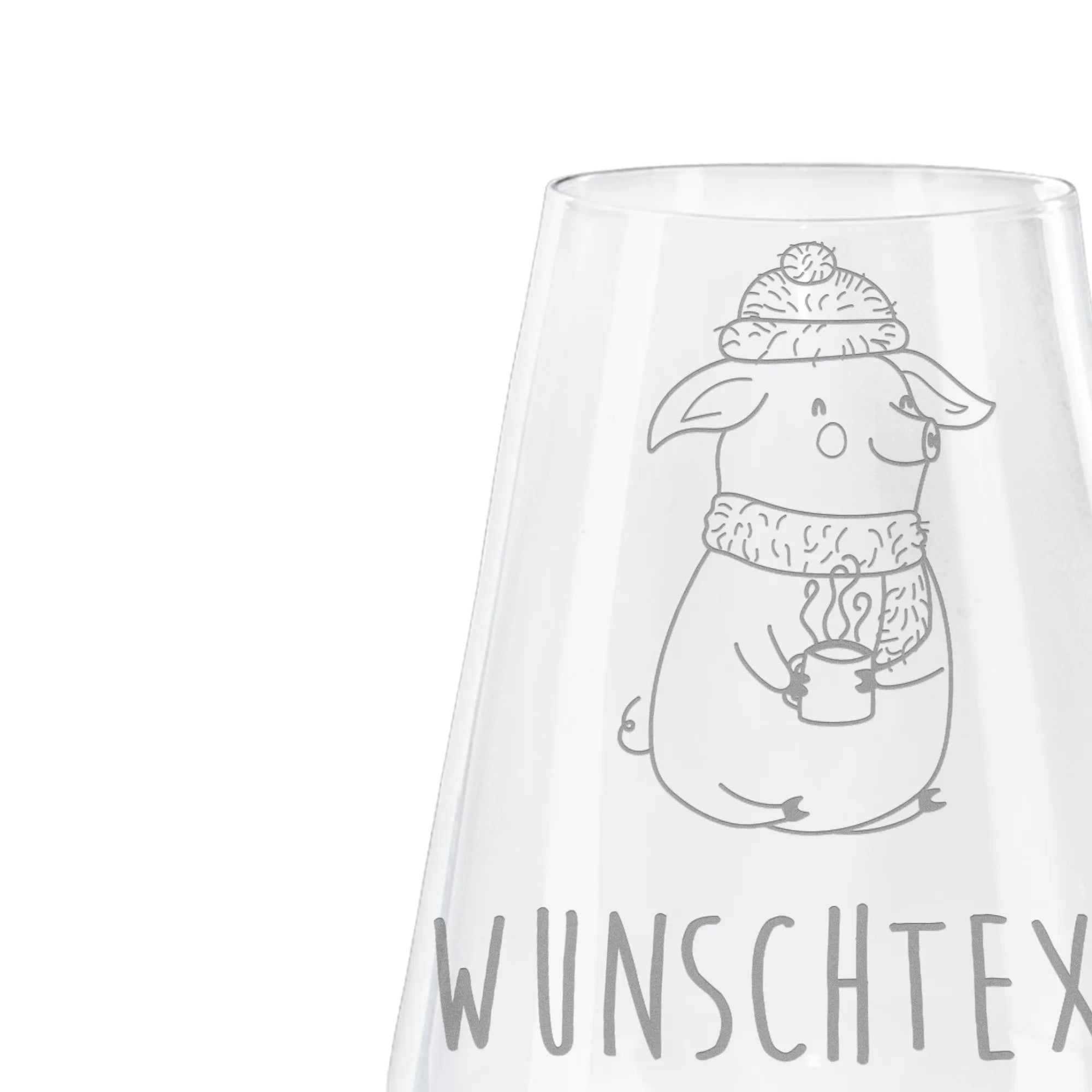 Spersonalizowany kieliszek do białego wina Świnka grzane wino Zima, Boże Narodzenie, dekoracje świąteczne, Mikołaj, Adwent, Wigilia, zimowy motyw
