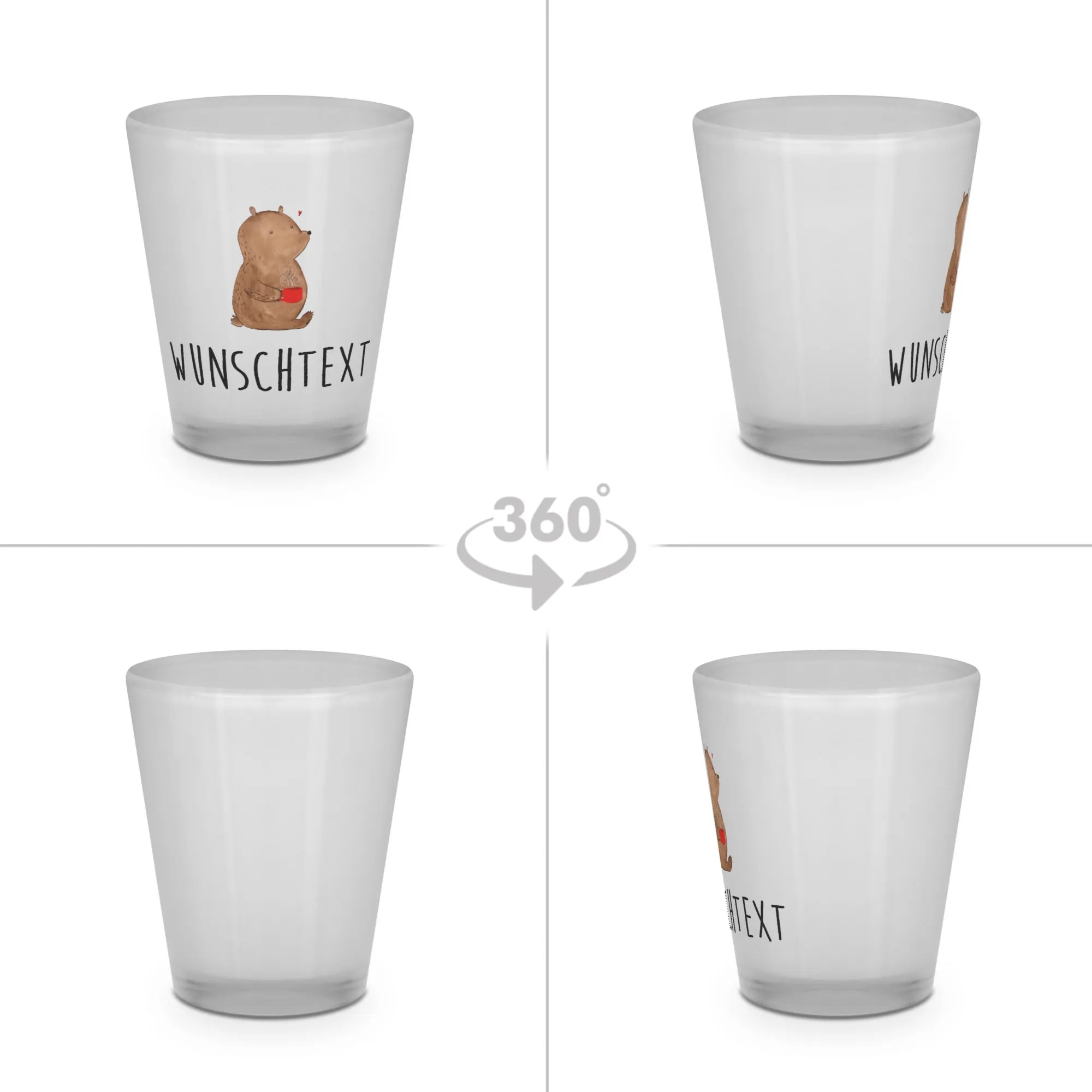 Das personalisierte Schnapsglas "Bär Kaffee" von Mr. & Mrs. Panda ist der perfekte Begleiter für alle, die ihr Getränk stilvoll genießen möchten. Mit seinem schlichten aber dennoch bezaubernden Design eines süßen Bären, der zufrieden eine Tasse Kaffee genießt, bringt es Freude in jede Runde.