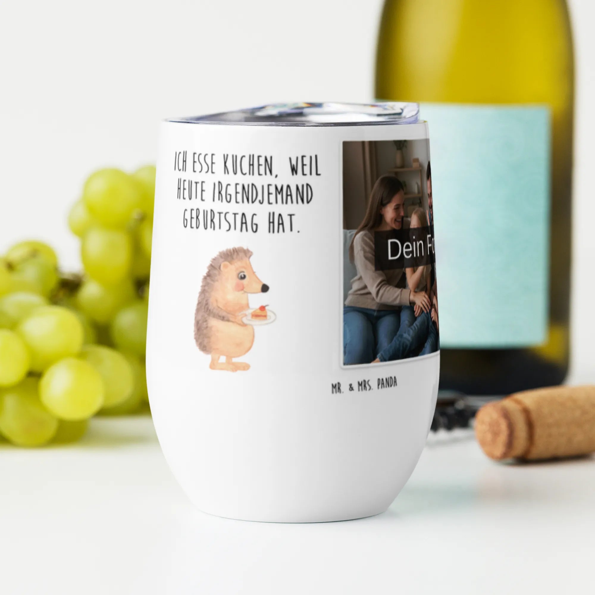 Spersonalizowany kubek do wina ze zdjęciem jeż kawałek ciasta