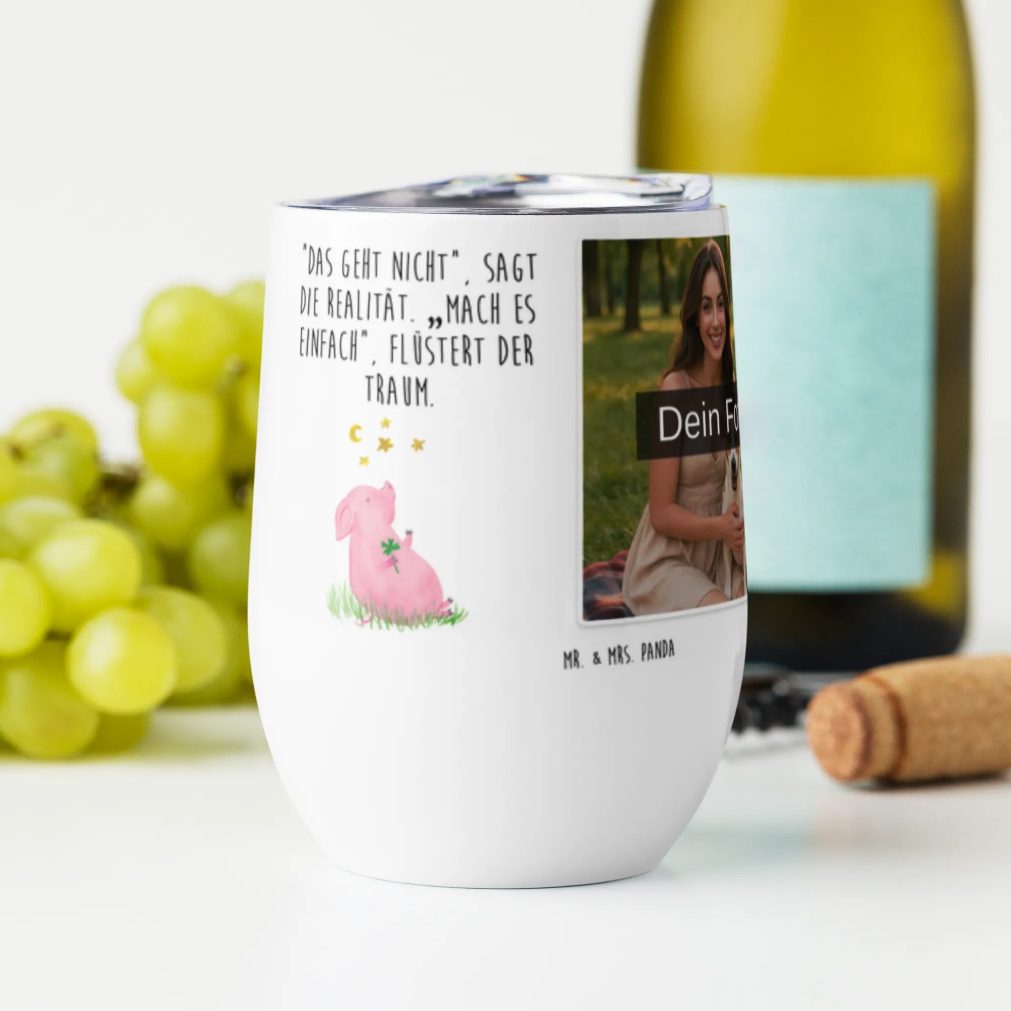 Spersonalizowany kubek do wina ze zdjęciem świnia Szczęście