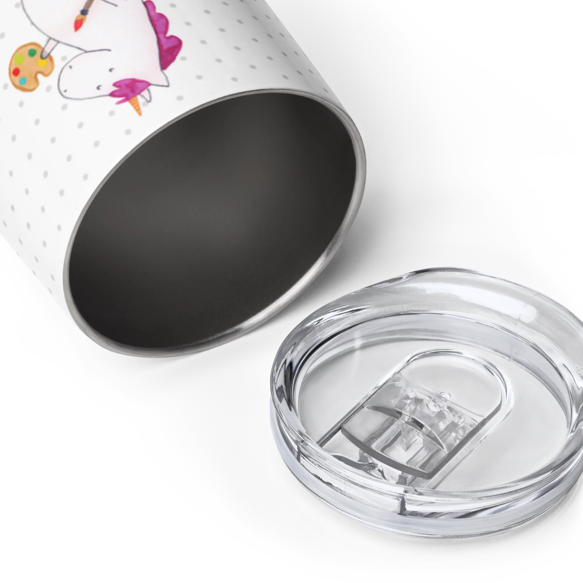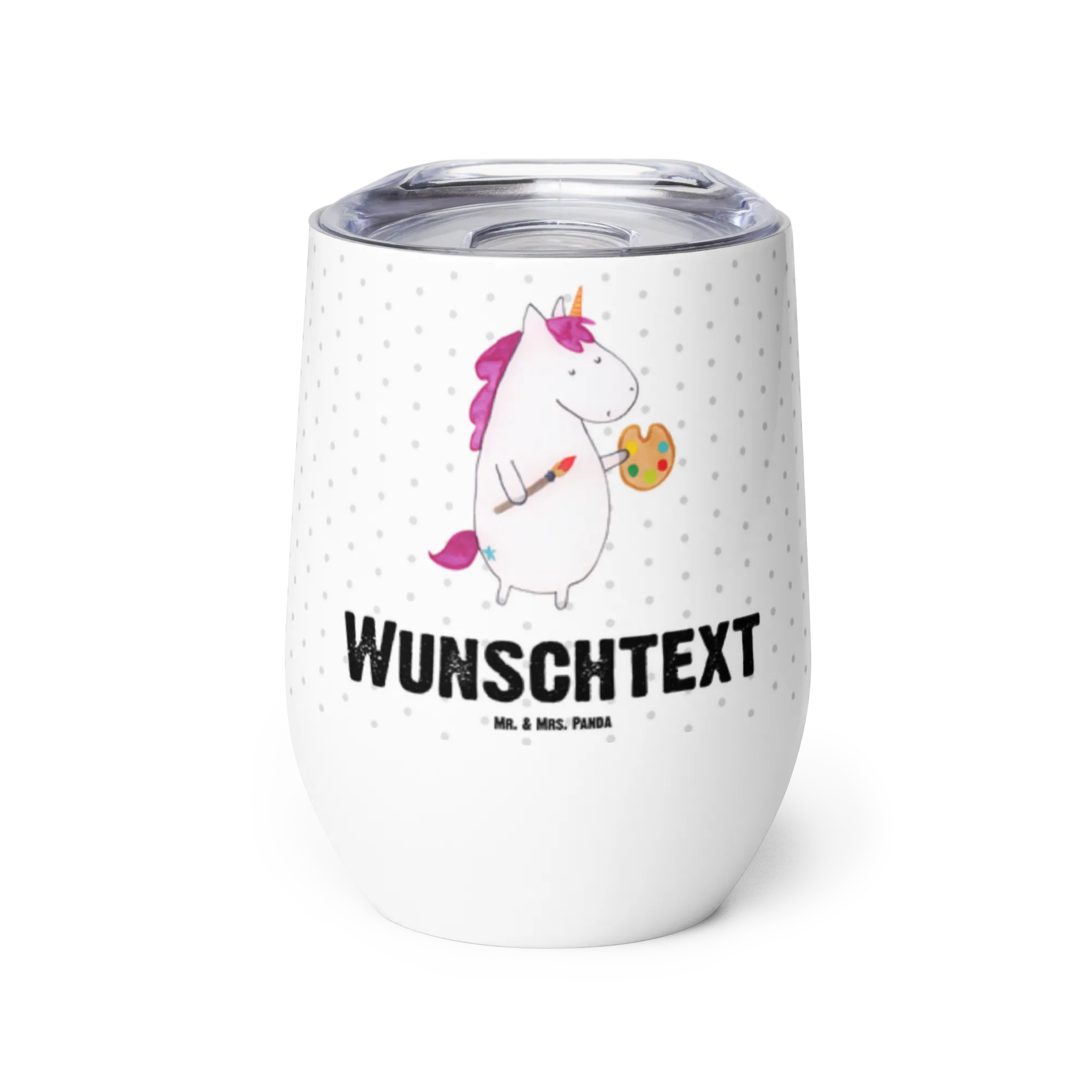 Du suchst nach dem perfekten Geschenk für einen kreativen Kopf oder einen Einhorn-Liebhaber? Dann ist der personalisierte Weinbecher "Einhorn Künstler" aus der zauberhaften Einhorn-Kollektion von Mr. & Mrs. Panda genau das Richtige! Dieser wunderschöne Weinbecher aus hochwertigem Edelstahl ist nicht nur ein praktischer Begleiter für unterwegs, sondern auch ein echtes Kunstwerk.