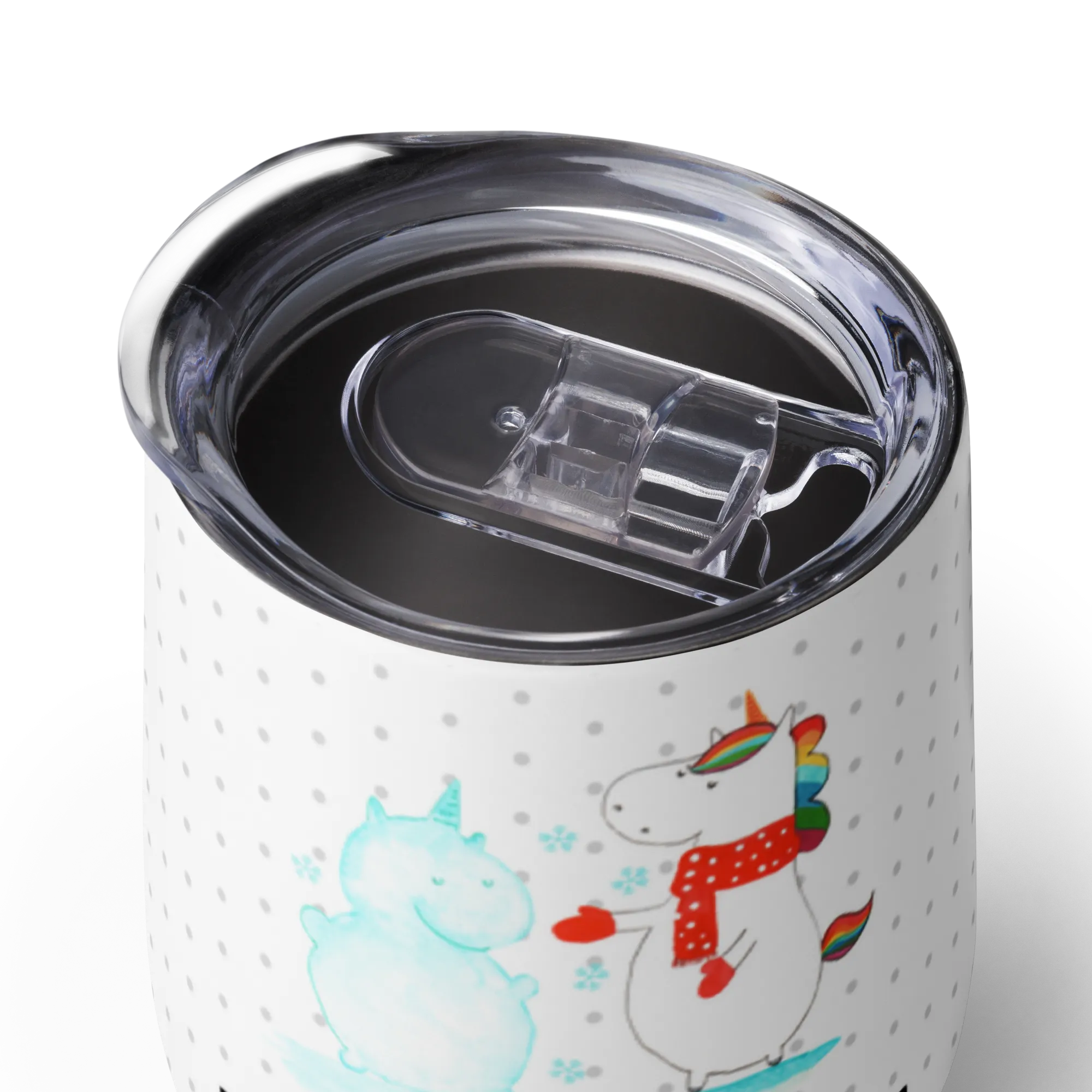 Der personalisierte Weinbecher "Einhorn Schneemann" aus der Einhorn-Kollektion von Mr. & Mrs. Panda ist das perfekte Geschenk für alle, die das Magische im Alltäglichen lieben! Dieser wunderschöne Weinbecher begeistert nicht nur durch sein ausgefallenes Design, sondern auch durch seine persönliche Note. Mit einer Kapazität von 375 ml und einer doppelwandigen Vakuumdichtung hält er deine Heißgetränke oder einen köstlichen Glühwein bis zu 5 Stunden lang auf der perfekten Temperatur. Ob du ihn unterwegs, bei der nächsten Gartenparty oder beim Winterfest nutzt - dieser Weinbecher ist ein echter Hingucker!