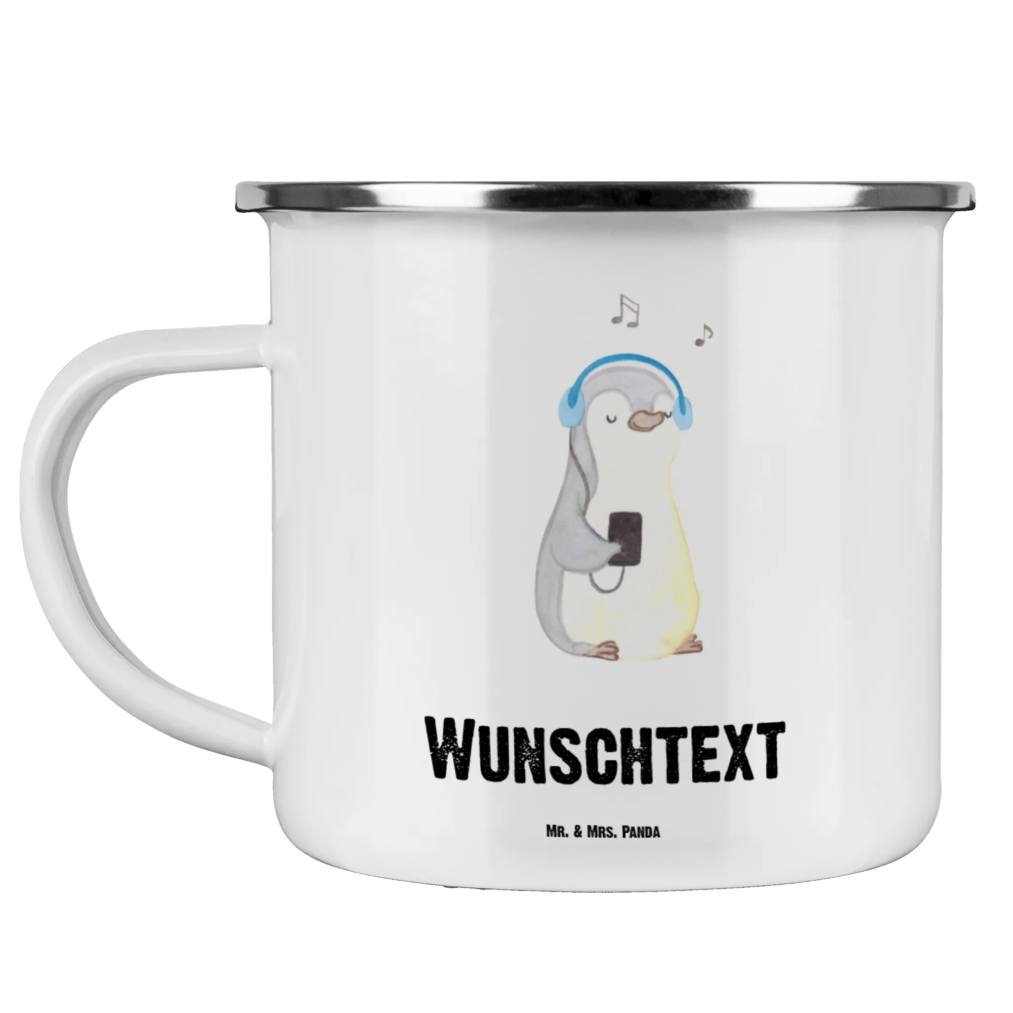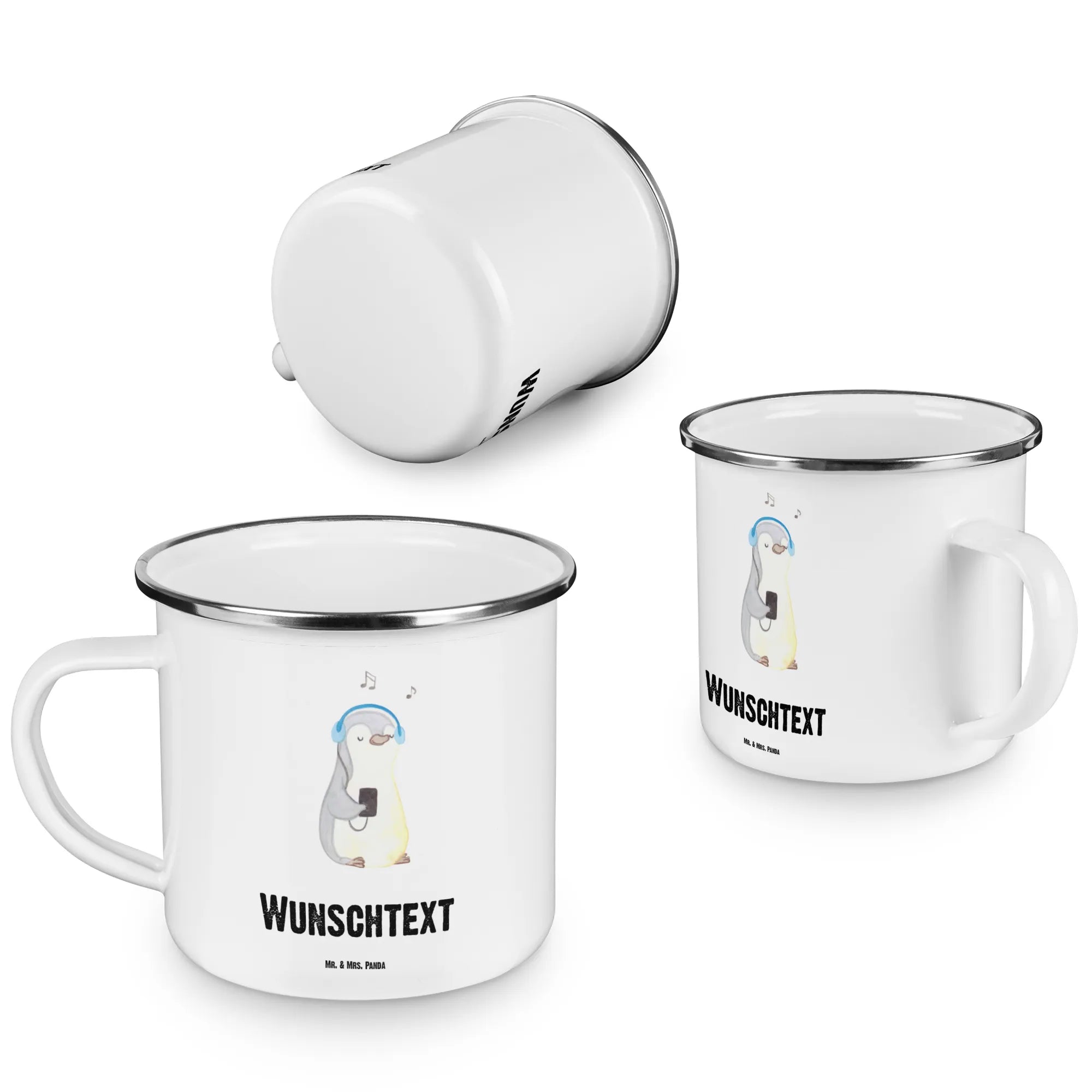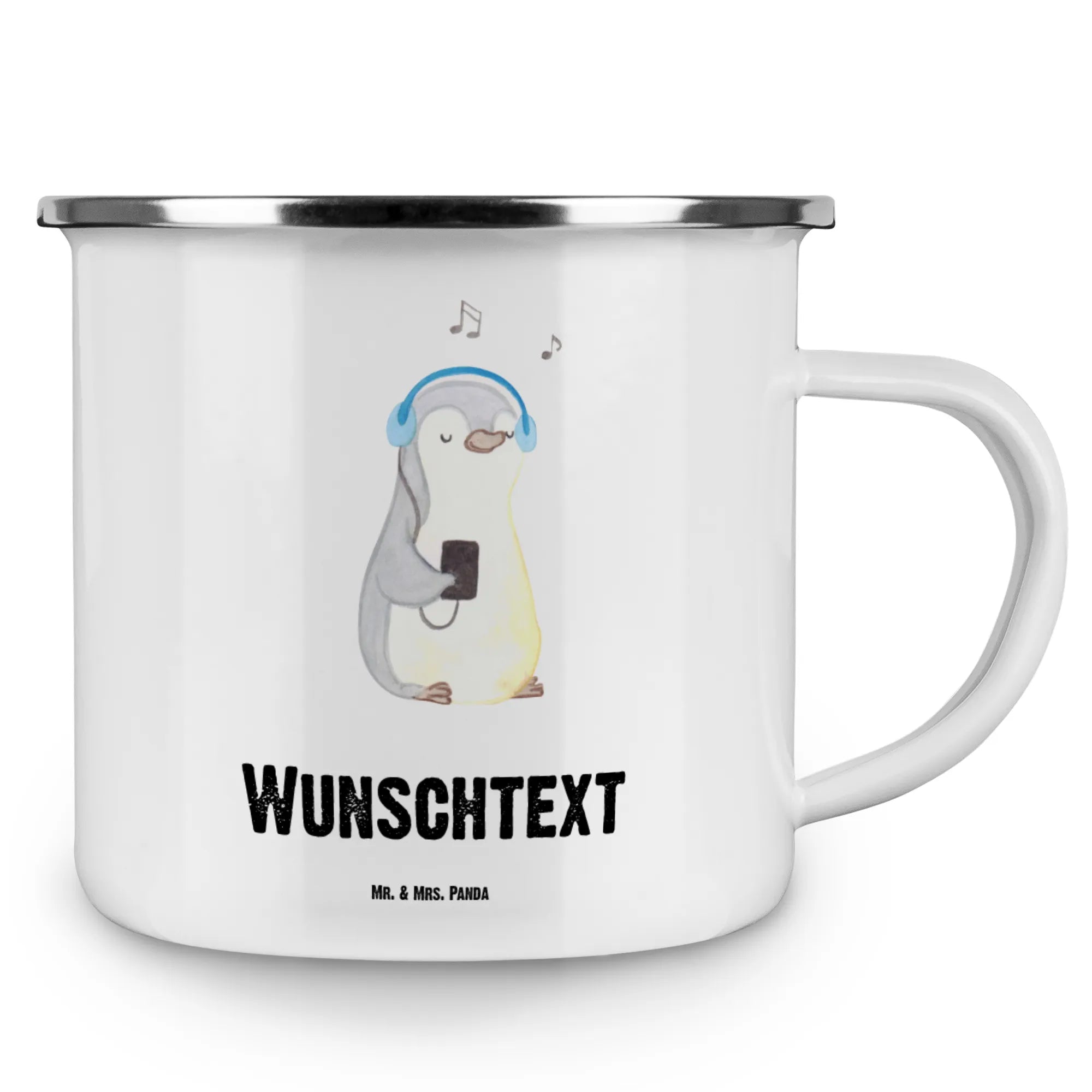 Spersonalizowany kubek emaliowany Pingwin Słuchać muzyki