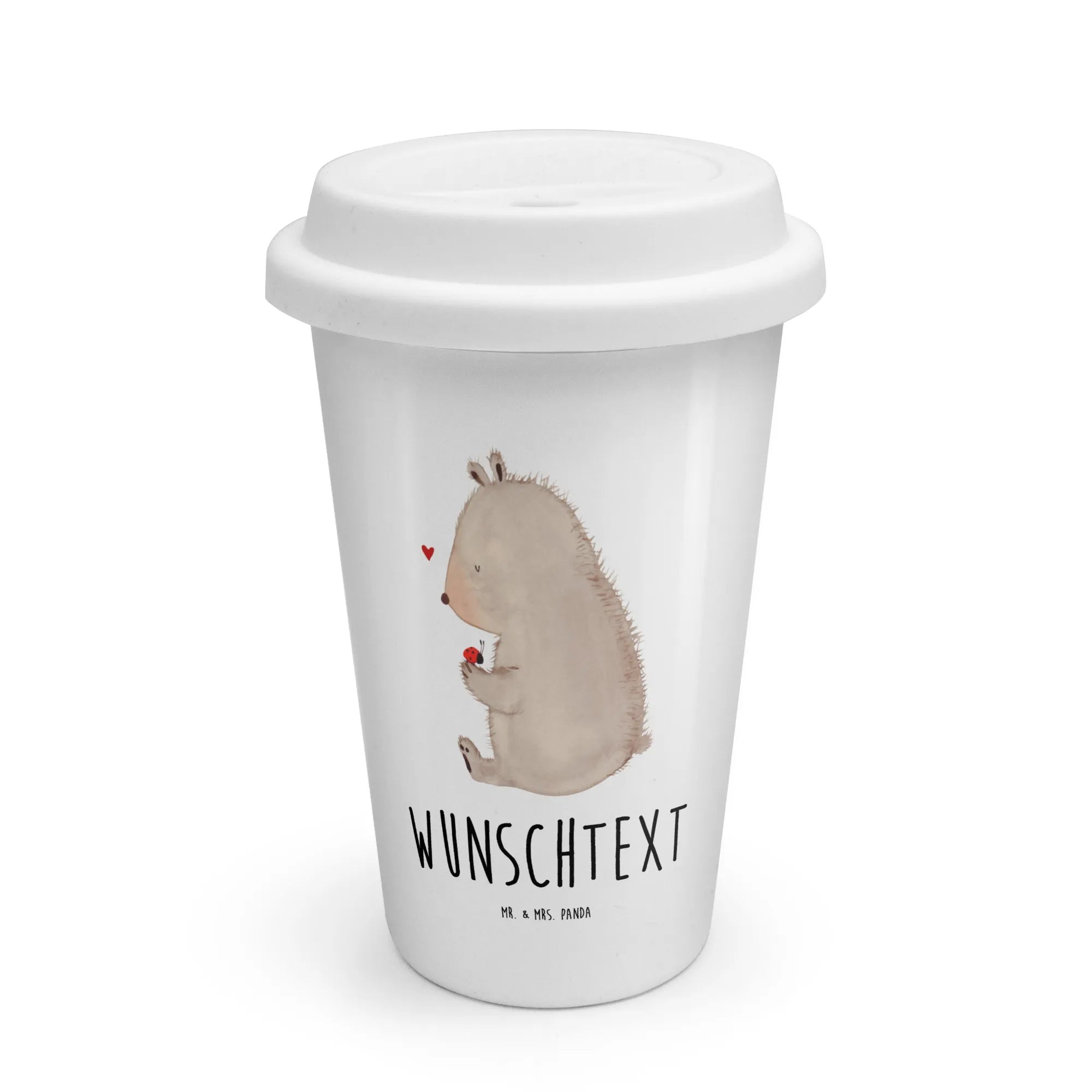 Du suchst nach dem perfekten Geschenk für Freunde oder Familie, die gerne Kaffee oder Tee unterwegs genießen? Unser personalisierter To Go Becher mit dem niedlichen Motiv "Bär mit Marienkäfer" von Mr. & Mrs. Panda ist die ideale Wahl. Dieser wunderschöne Kaffeebecher to go bringt nicht nur Freude beim Trinken, sondern sorgt auch dafür, dass dein Lieblingsgetränk länger warm bleibt.