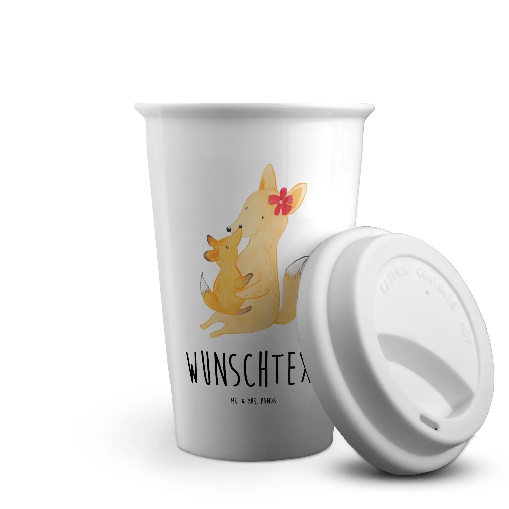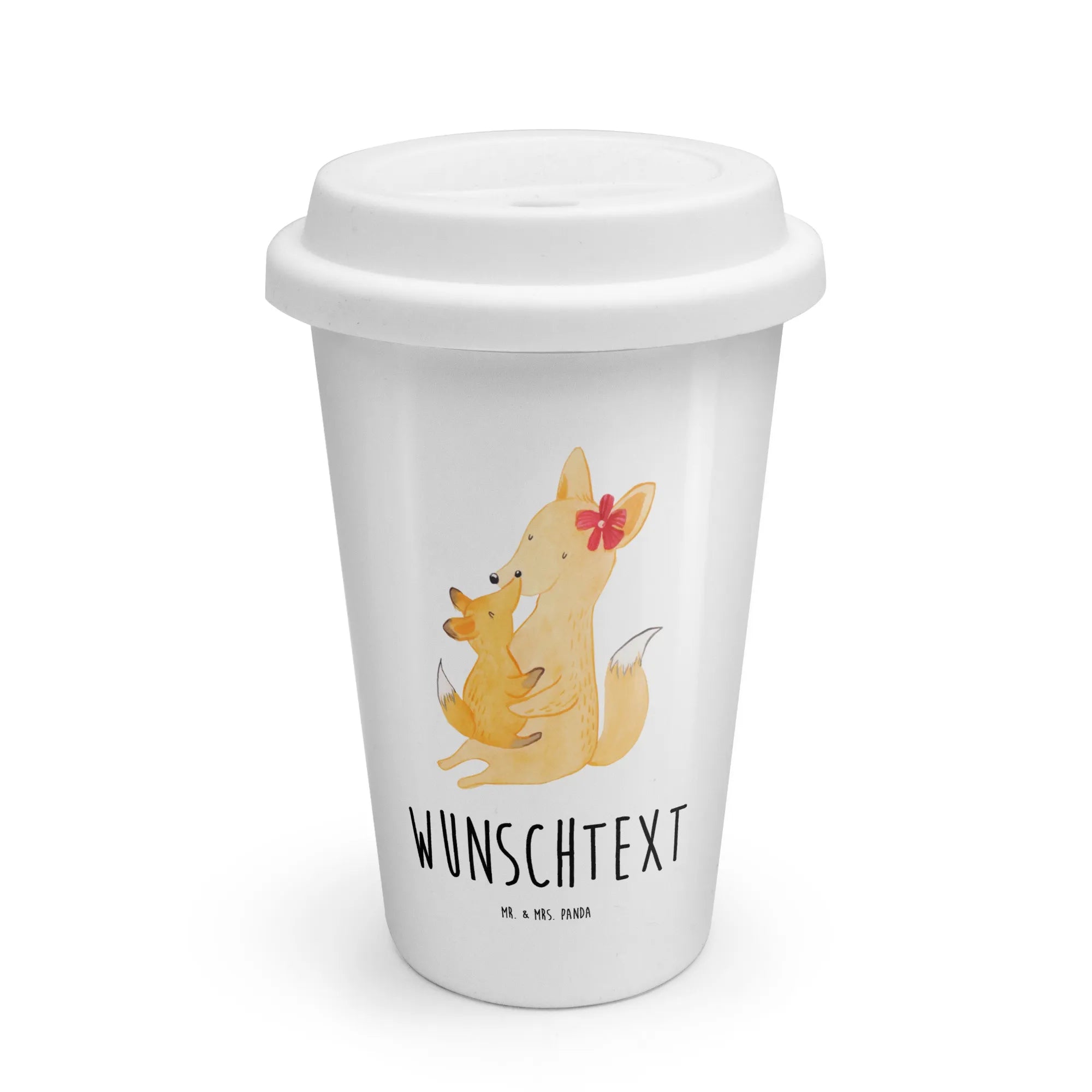 Der personalisierte To Go Becher "Fuchs Mama & Kind" von Mr. & Mrs. Panda ist das perfekte Geschenk für jede Mama, die ihren Kaffee oder Tee gerne unterwegs genießt. Dieser wunderschöne Kaffeebecher ist ideal für alle, die das Besondere lieben und gleichzeitig Wert auf individuelle Gestaltung legen. Der Becher ist aus hochwertiger Keramik gefertigt und beeindruckt mit seinem brillant glänzenden Fotodruck, der das süße Motiv von Mama- und Kindfuchs fantastisch zur Geltung bringt. Die liebevolle Darstellung strahlt Geborgenheit und Zusammengehörigkeit aus und macht den Becher zu einem ganz besonderen Begleiter für Mamas und ihre Lieblingstochter.