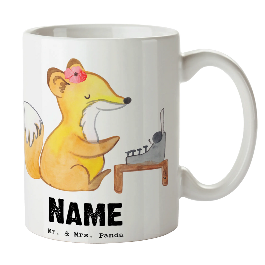 Suchst Du ein persönliches Geschenk für eine Autorin? Unsere personalisierte Tasse „Schriftstellerin mit Herz“ von Mr. & Mrs. Panda ist genau das Richtige: liebevoll, originell und voller Persönlichkeit. Das Motiv zeigt einen süßen Fuchs als Frau, die in einer Schreibmaschine sitzt und eine Geschichte tippt – ein Bild, das Kreativität und Leidenschaft fürs Schreiben strahlen lässt. ✨