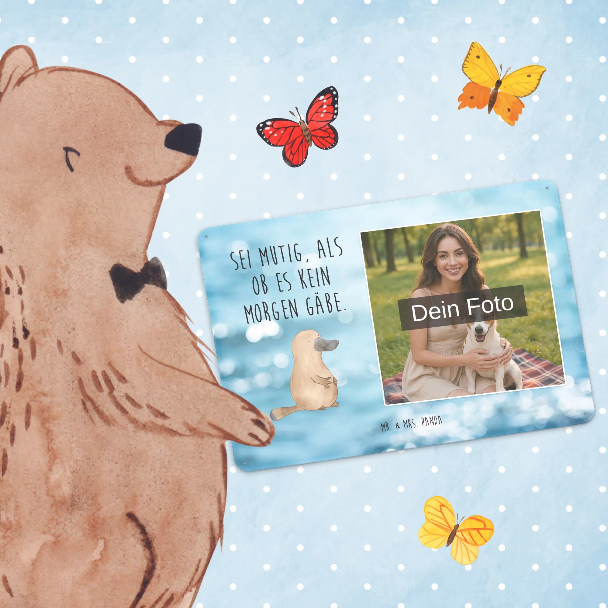 Spersonalizowany metalowy szyld ze zdjęciem dziobak Odwaga - DIN A6