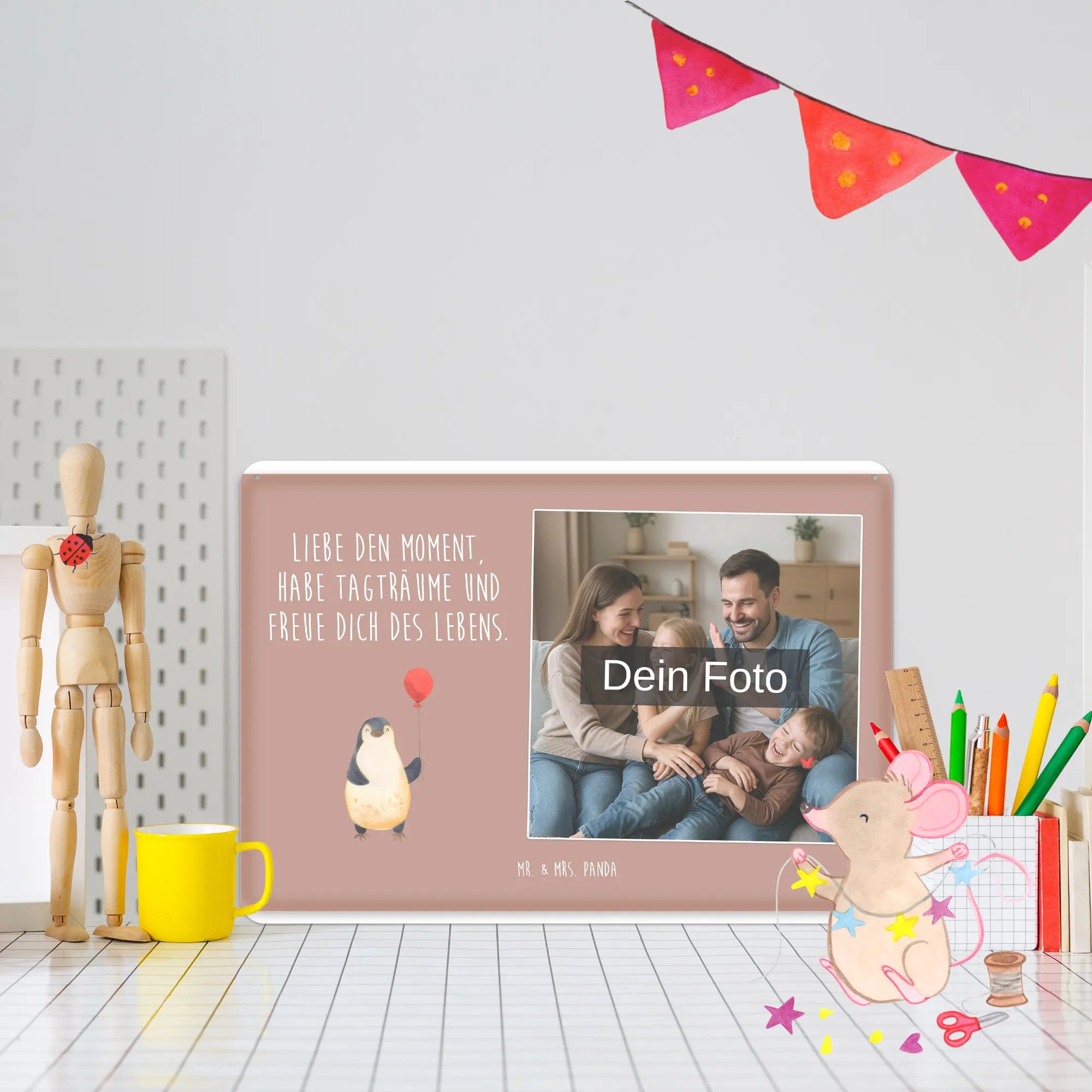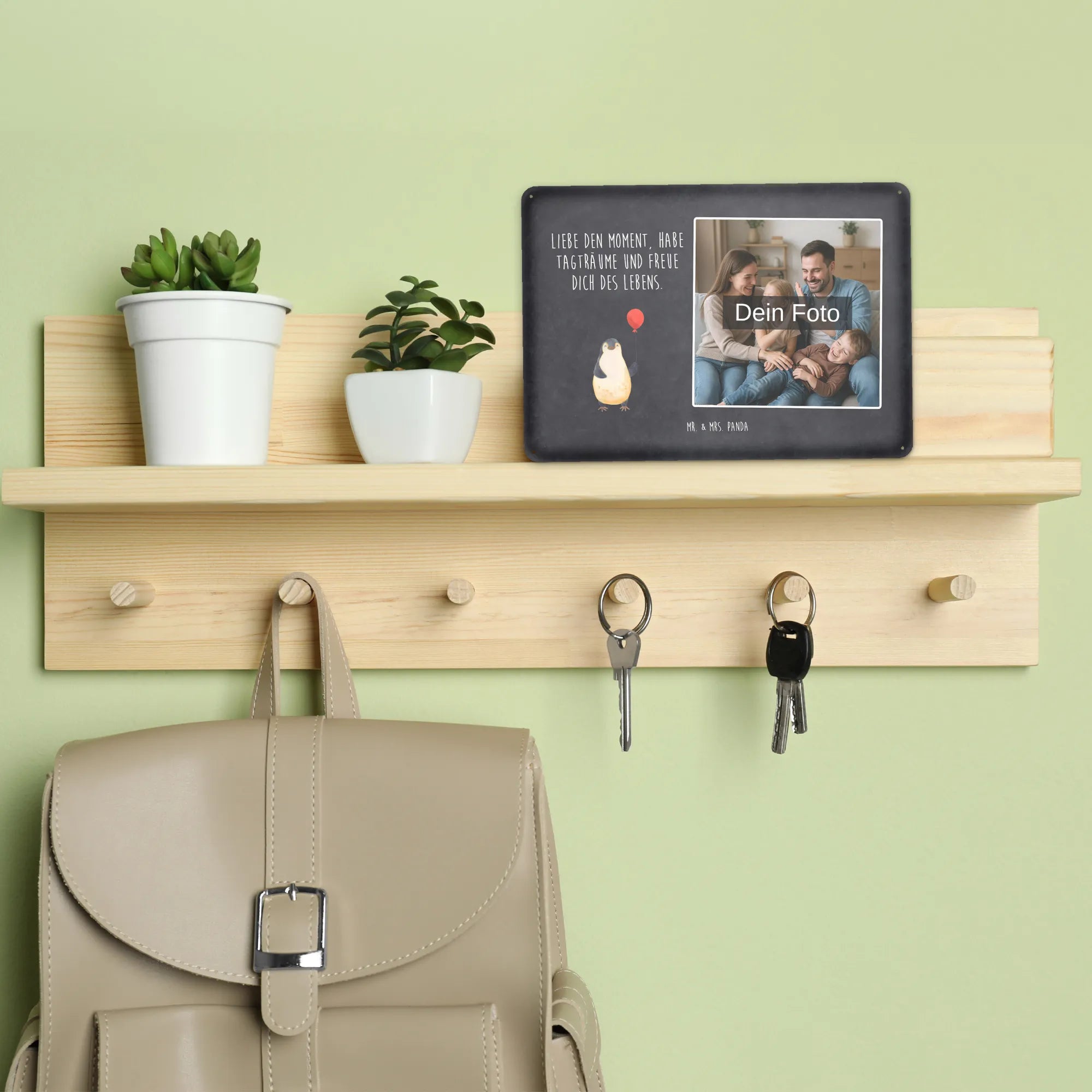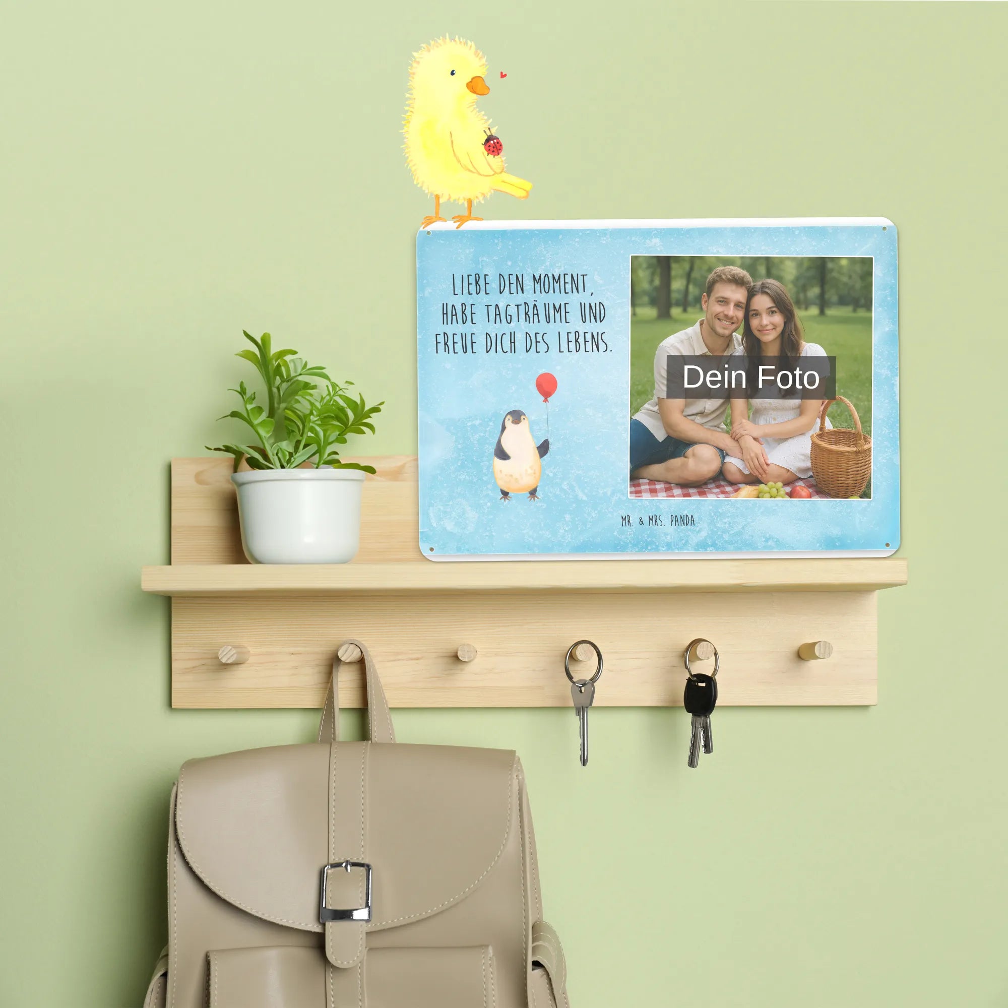 Spersonalizowany metalowy szyld ze zdjęciem pingwin balon - DIN A6 - lodowoniebieski