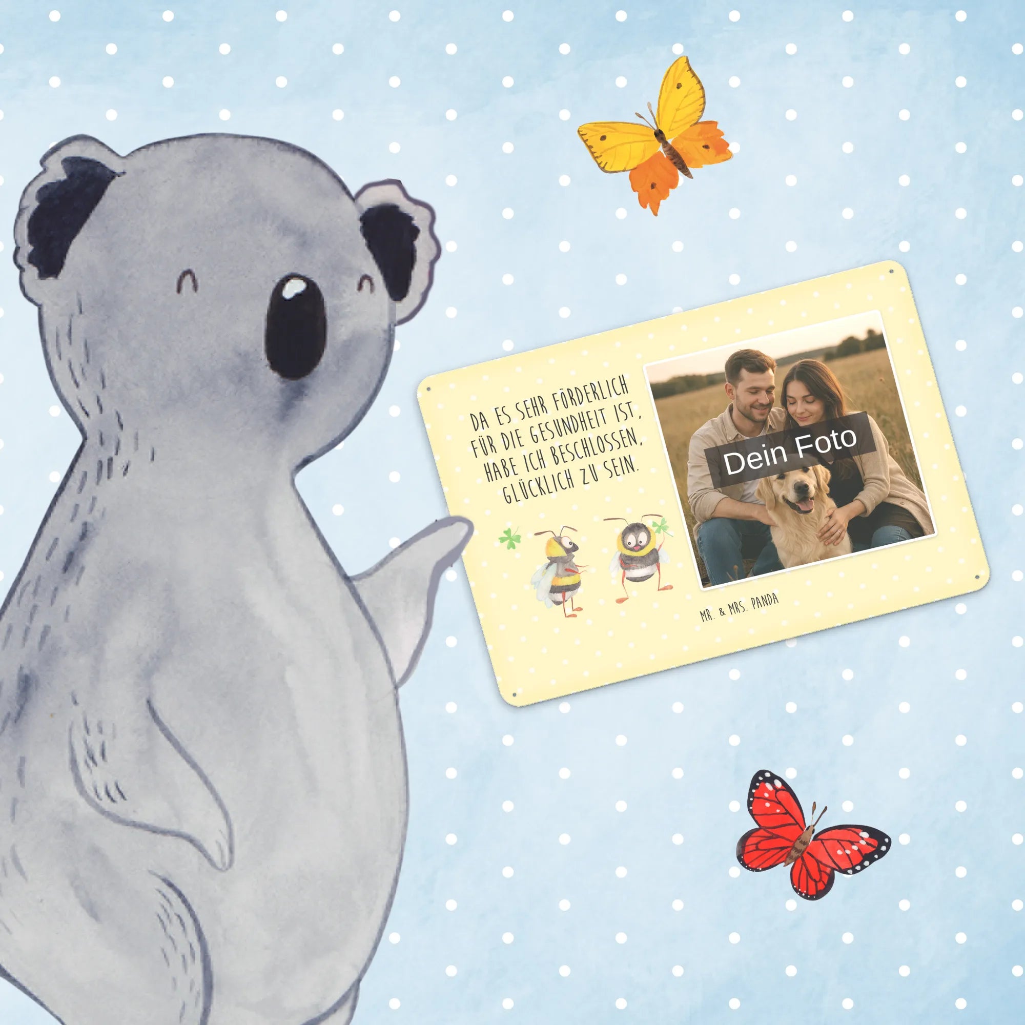 Spersonalizowany metalowy szyld ze zdjęciem Trzmiele koniczyna - DIN A6 - Pastelowy żółty