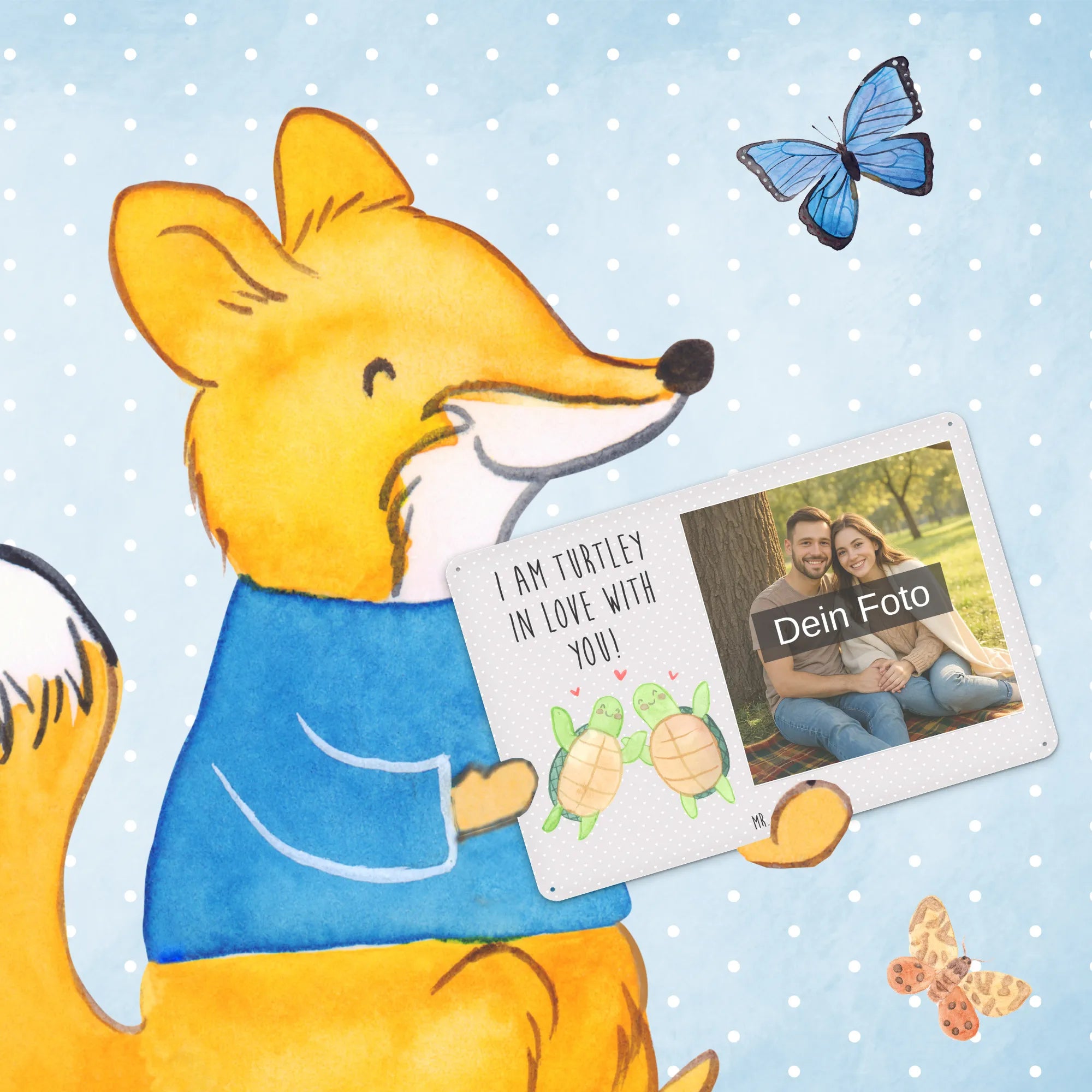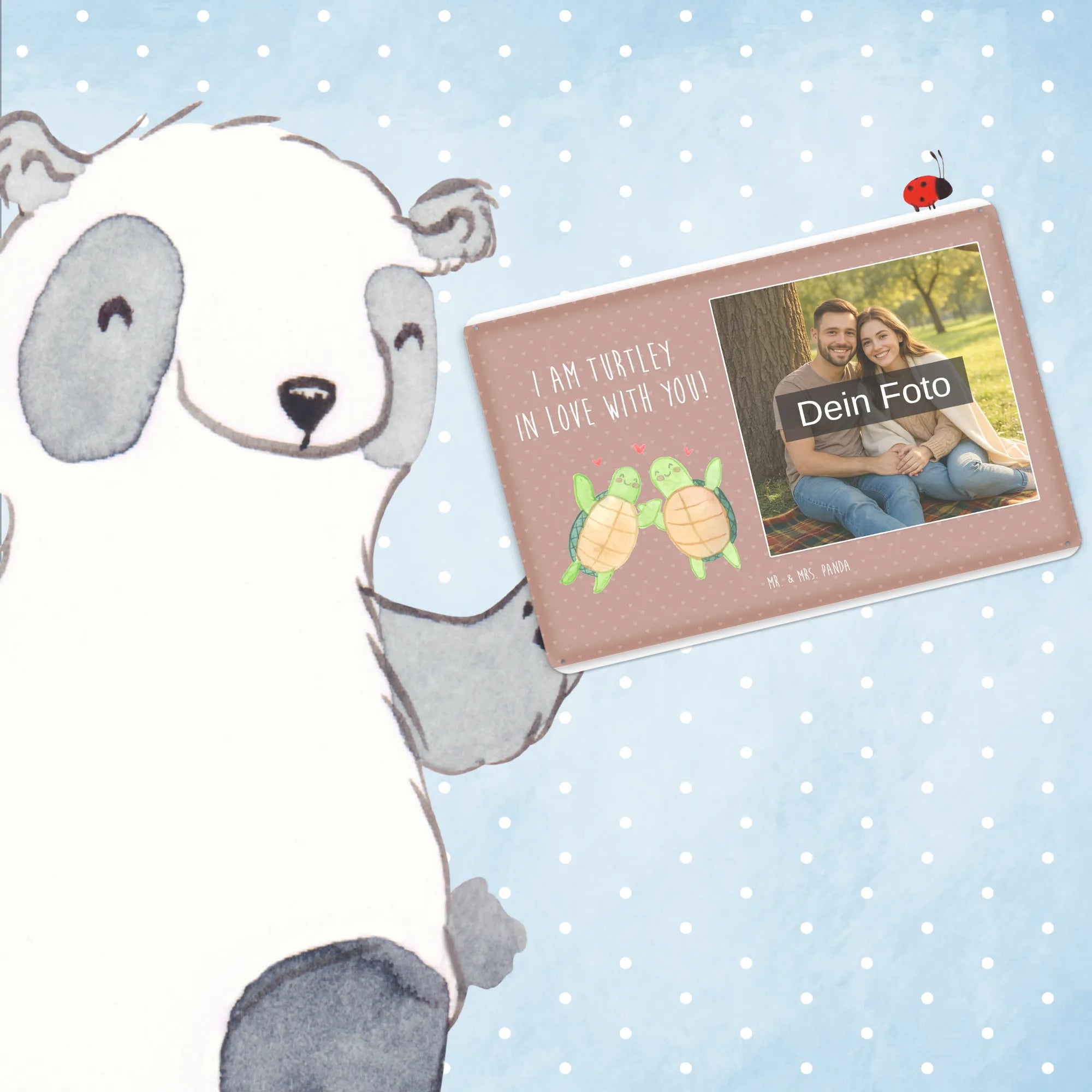 Spersonalizowany metalowy szyld ze zdjęciem żółwie para - DIN A6 - Brąz Pastelowy