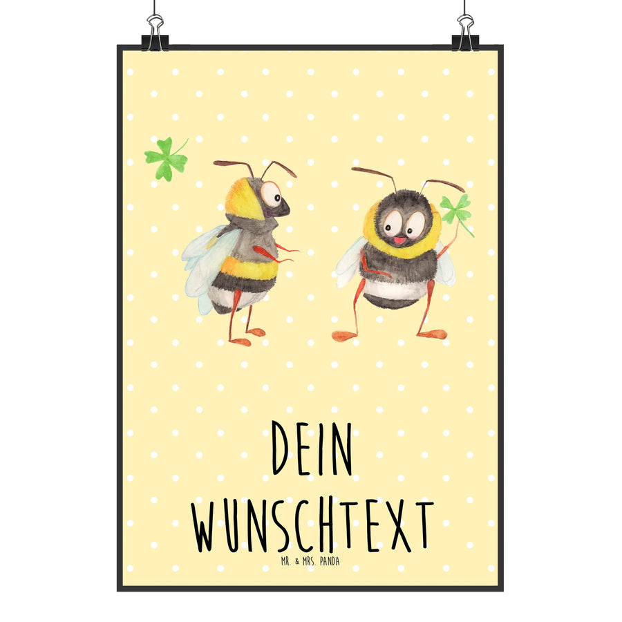 Suchst du nach einem besonderen Geschenk, das von Herzen kommt? Dann ist das personalisierte Poster mit dem Motiv "Hummeln mit Kleeblatt" aus der Small World Kollektion von Mr. & Mrs. Panda genau das Richtige für dich!