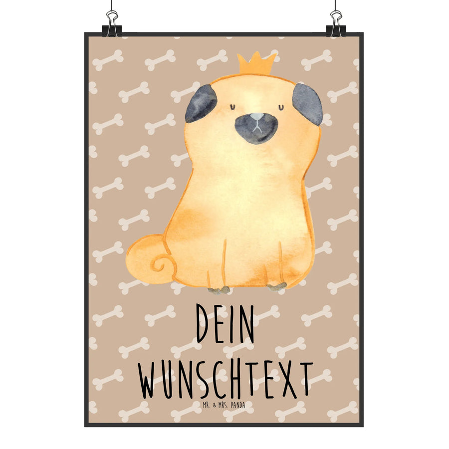 Das personalisierte Poster mit dem niedlichen Mops Krone aus der Hunde Kollektion von Mr. & Mrs. Panda ist das perfekte Geschenk für jeden Hundeliebhaber und Hundebesitzer. Warum? Weil es nicht nur ein wunderschönes Design bietet, sondern auch eine persönliche Note erhält, die das Herz berührt.