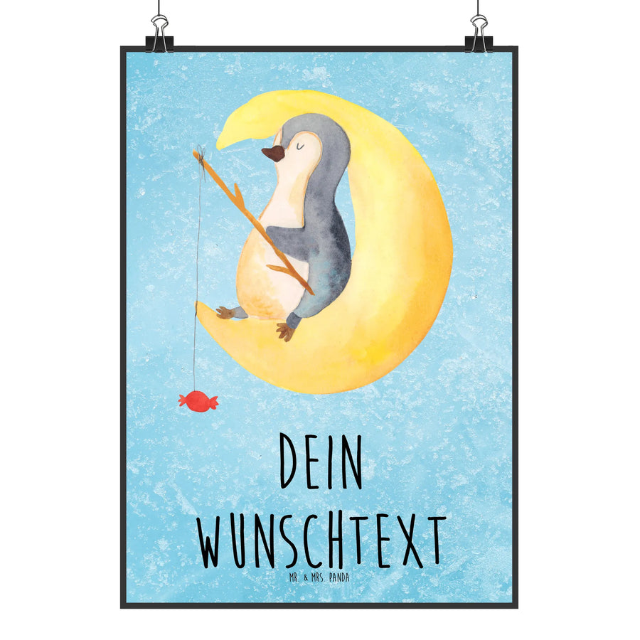 Entdecke das bezaubernde personalisierte Poster "Pinguin Mond" aus der aufregenden Pinguin-Kollektion von Mr. & Mrs. Panda!