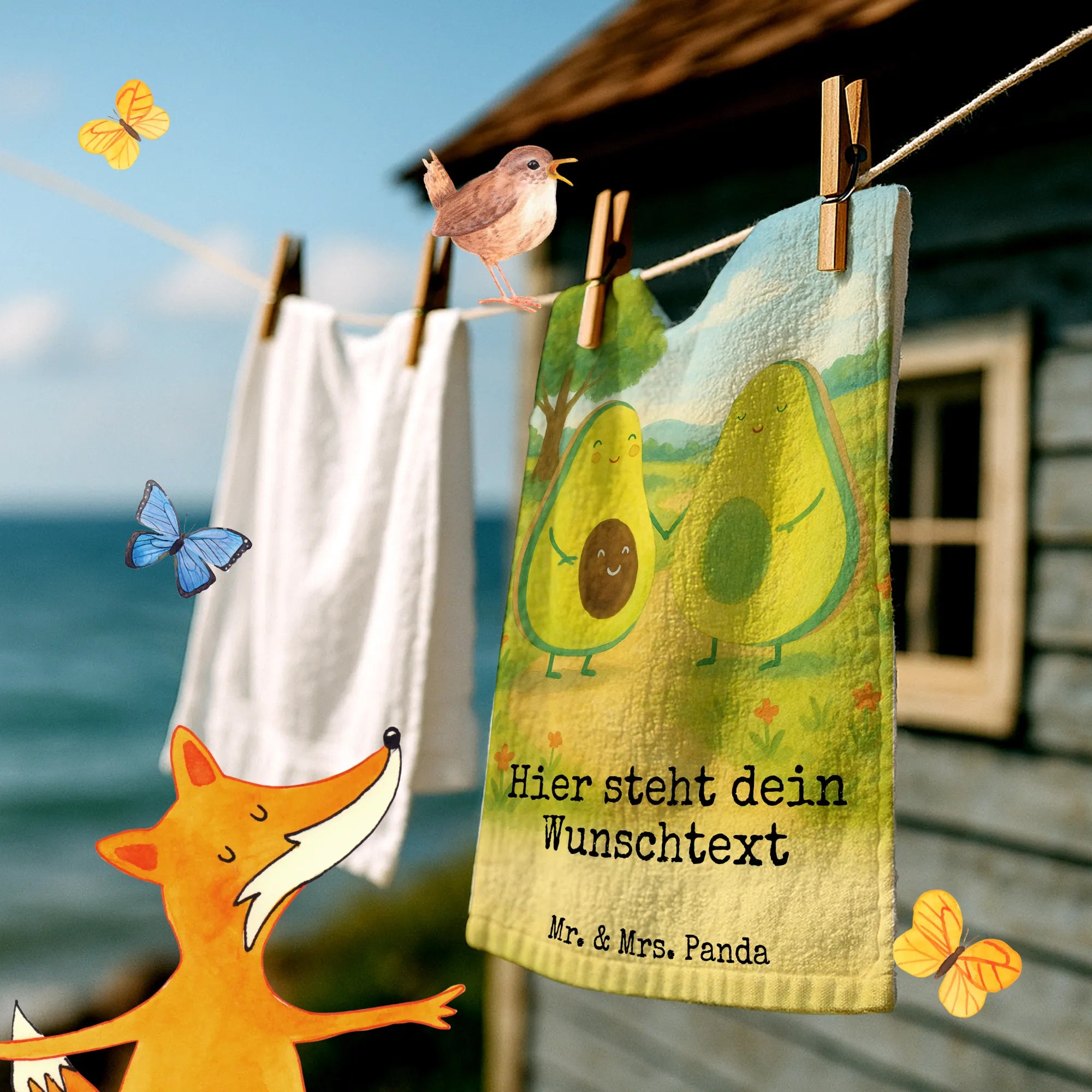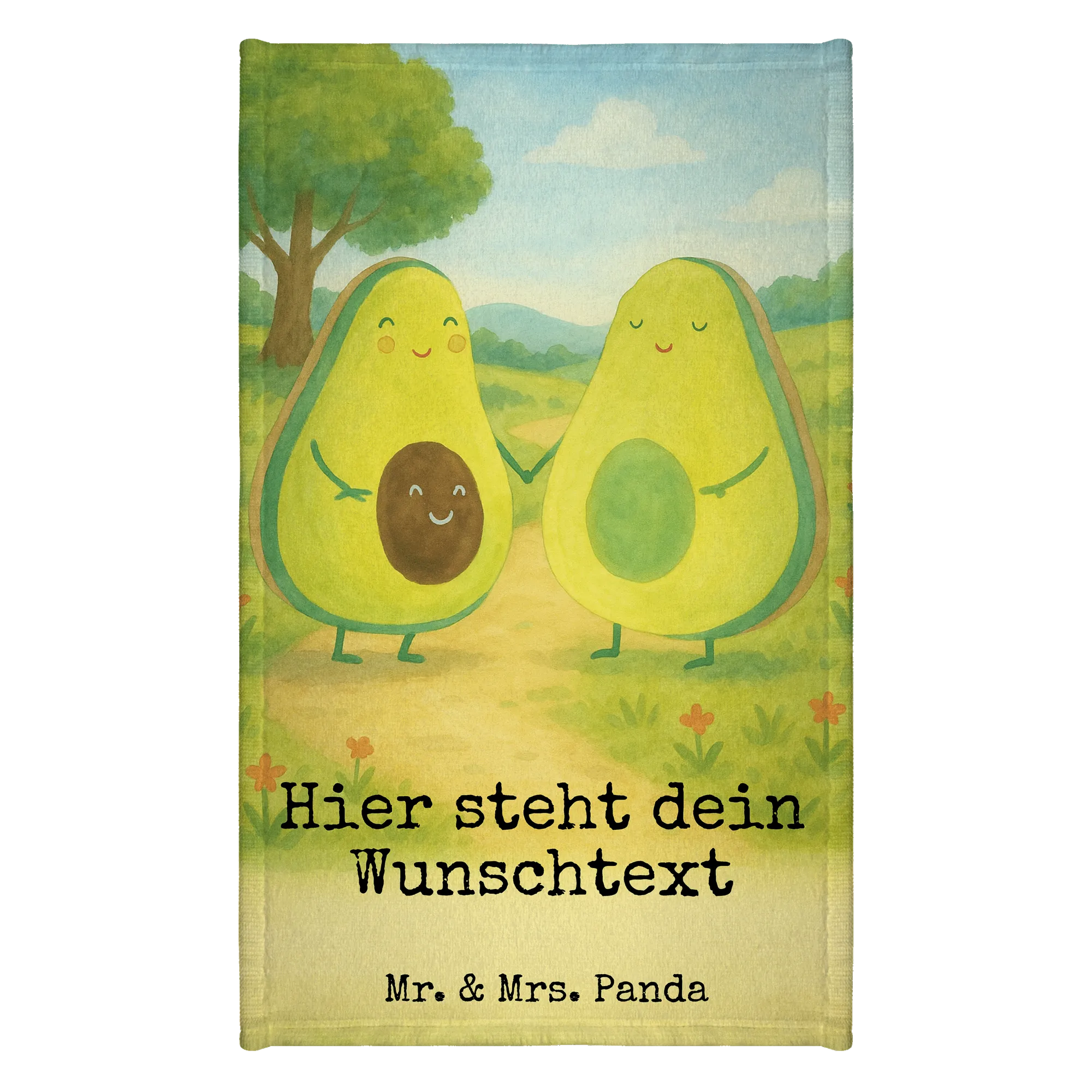 Personalisiertes Gästehandtuch Avocado Pärchen Design – Mr. & Mrs. Panda