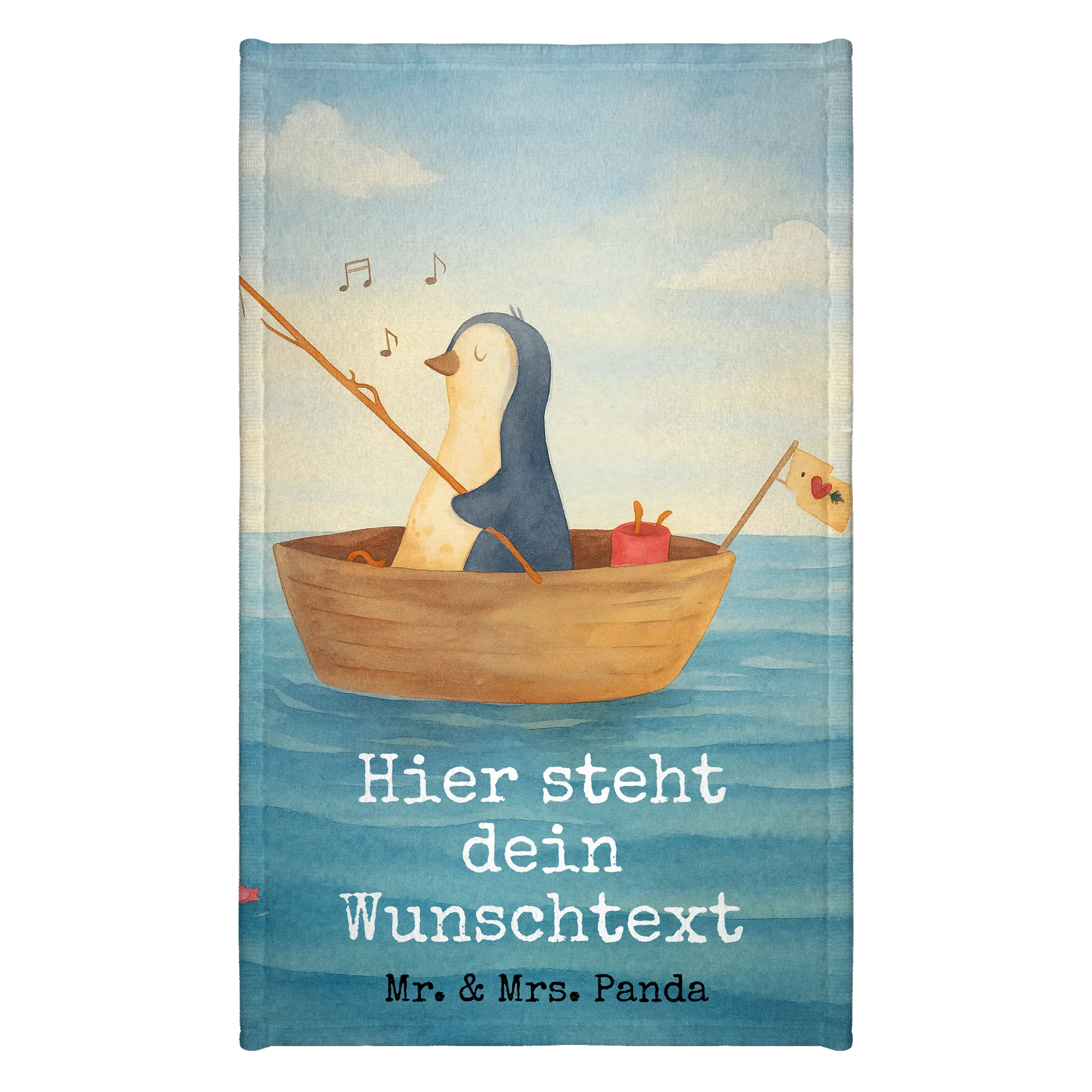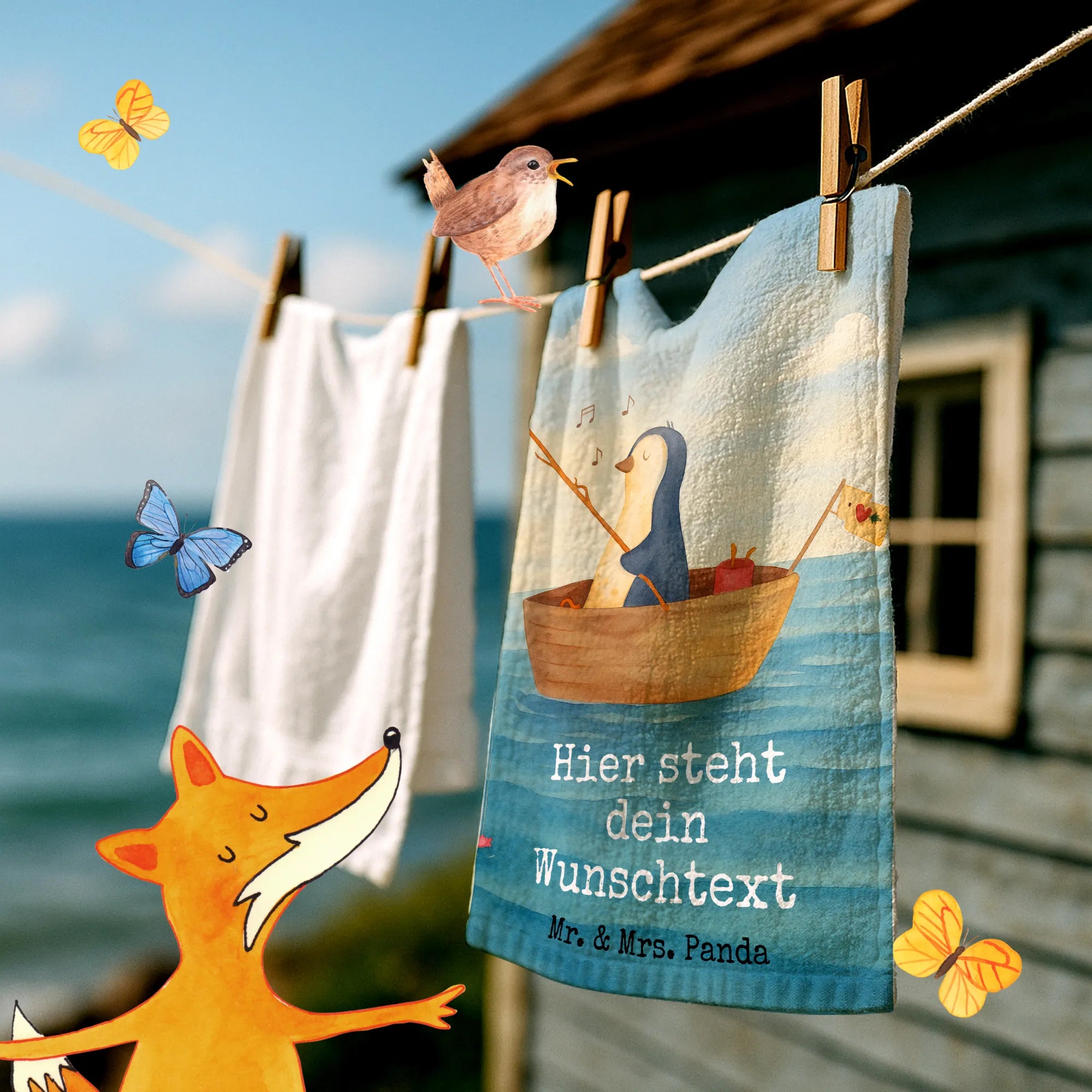 Personalisiertes Gästehandtuch Pinguin Angelboot Design