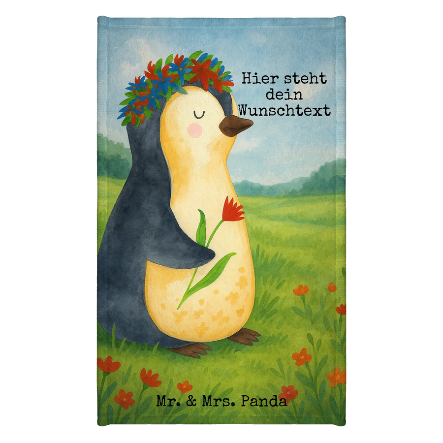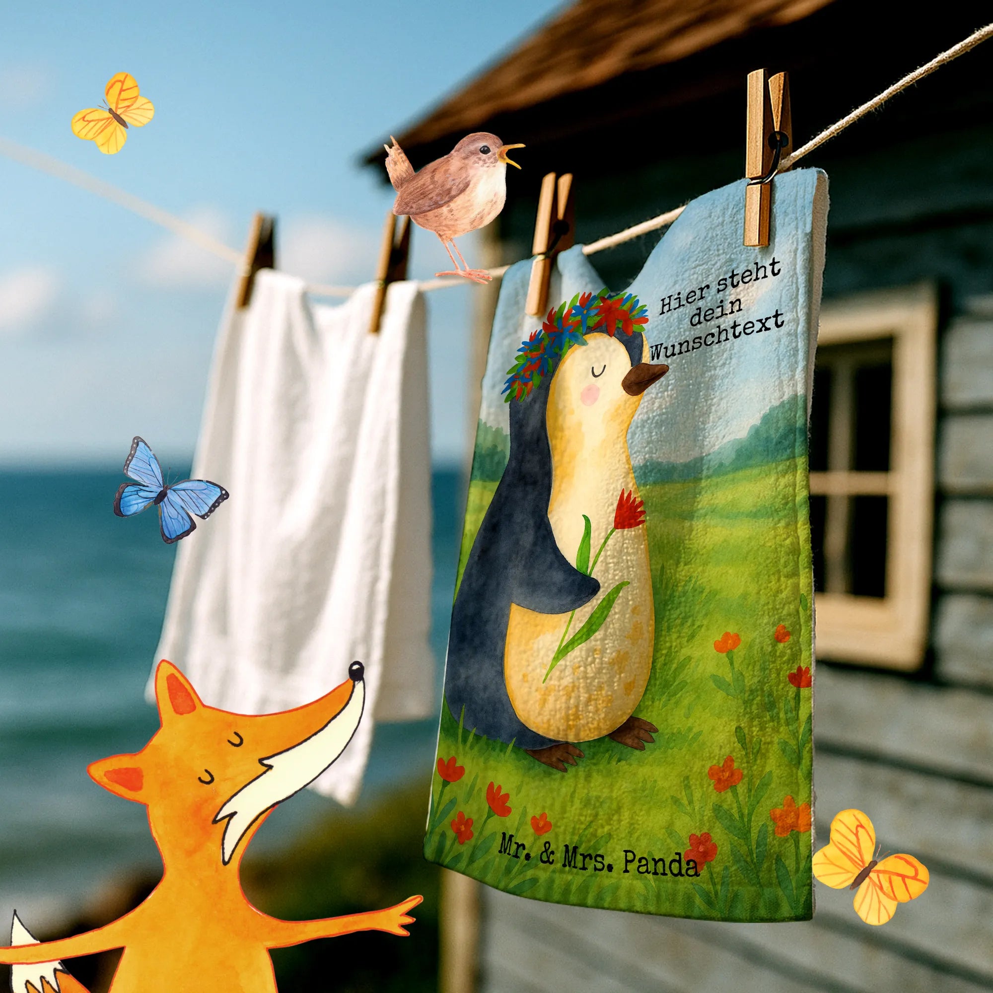 Personalisiertes Gästehandtuch Pinguin Blumen Design