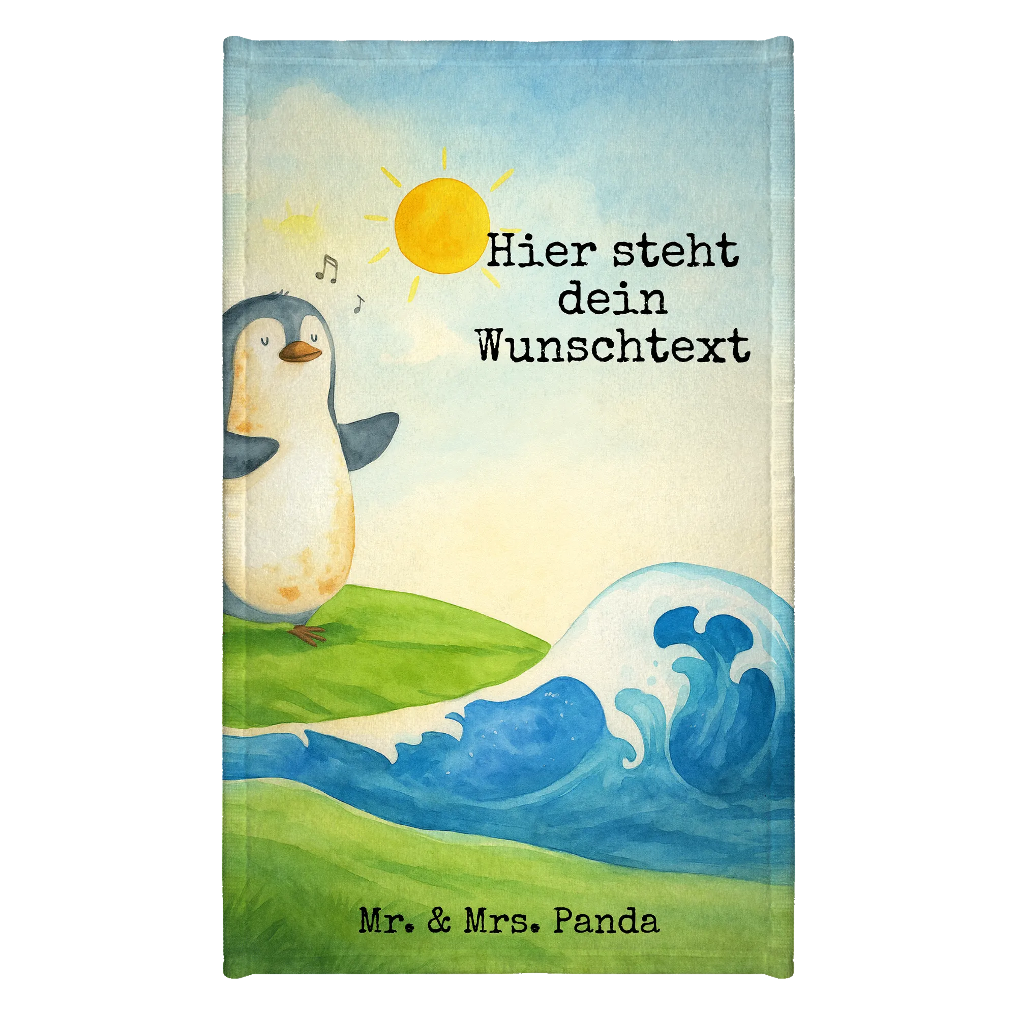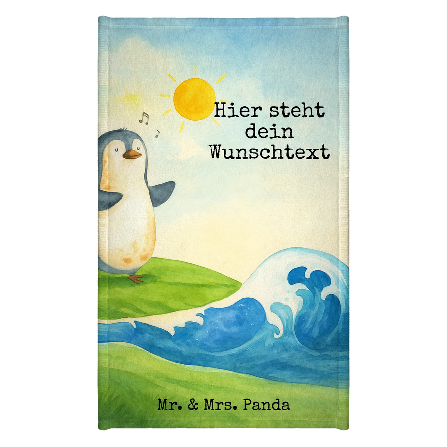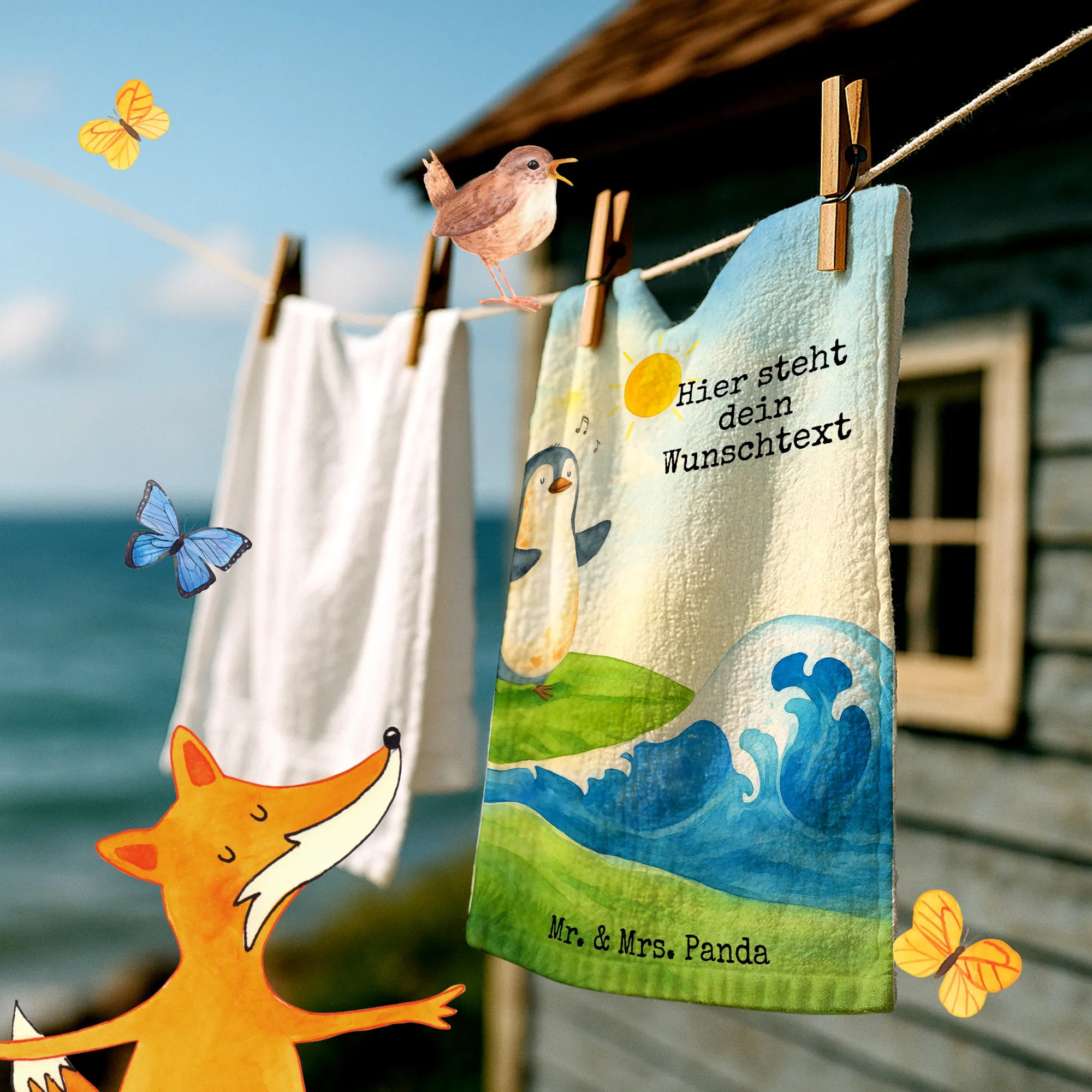 Personalisiertes Gästehandtuch Pinguin Surfer Design