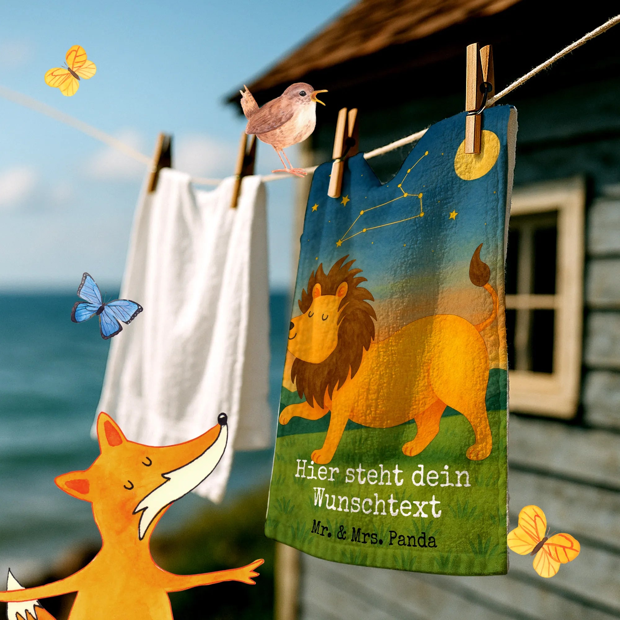 Personalisiertes Gästehandtuch Sternzeichen Löwe Design – Mr. & Mrs. Panda