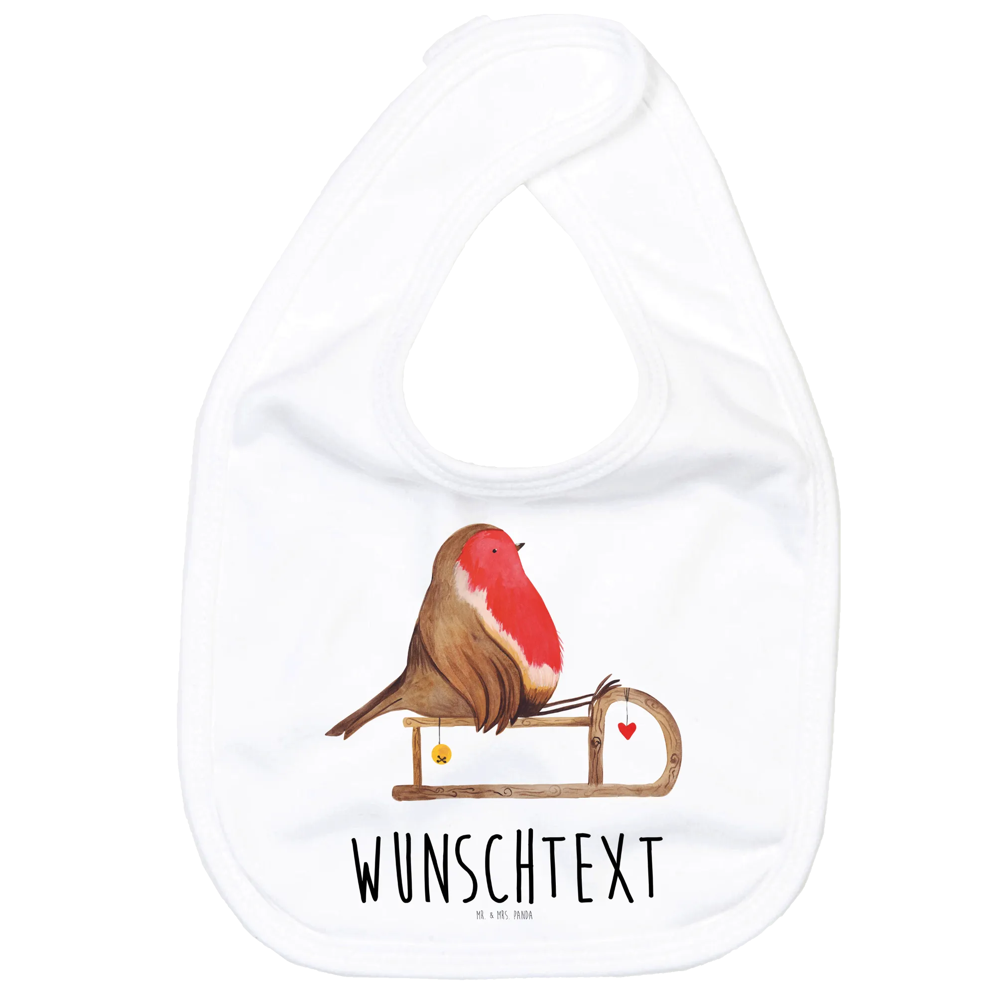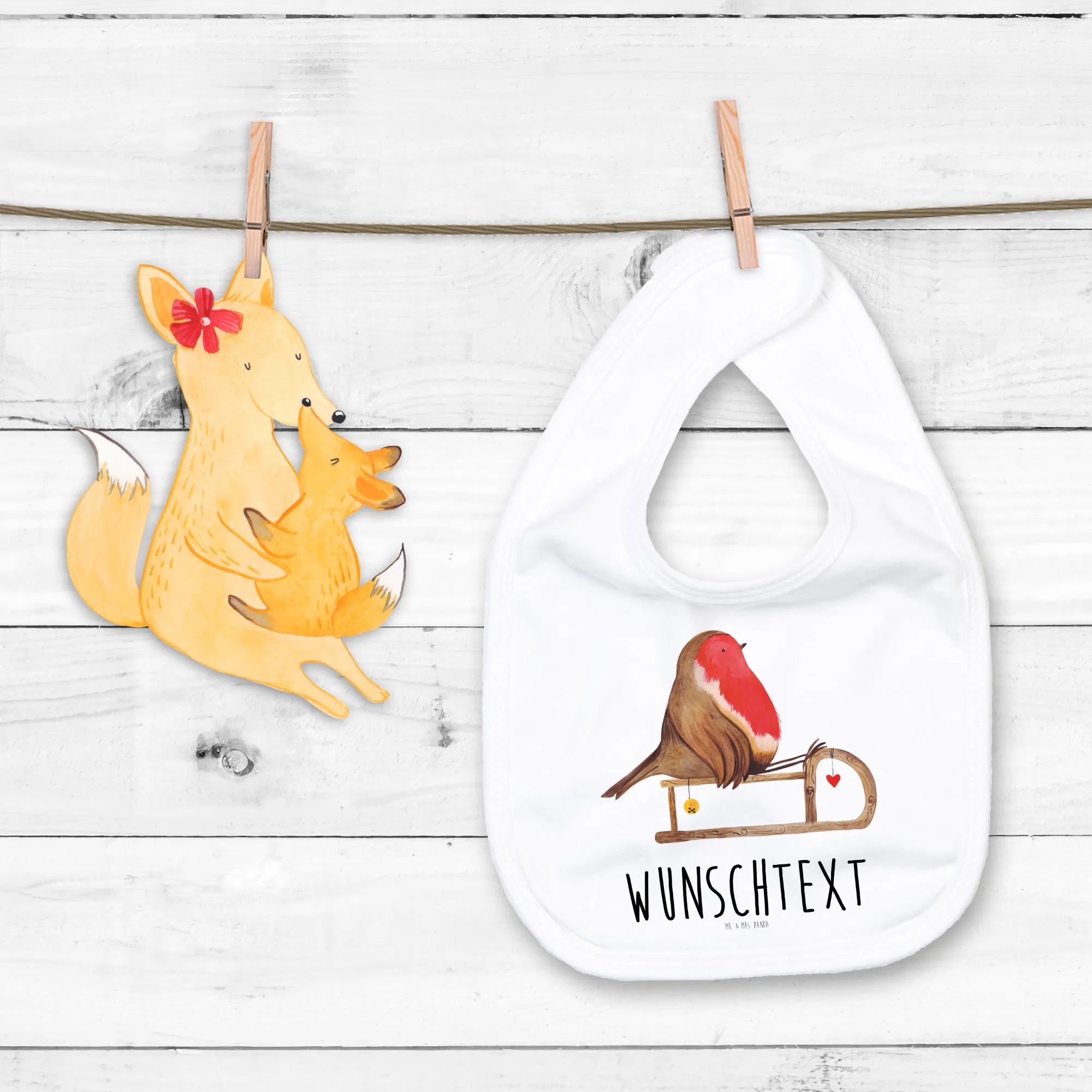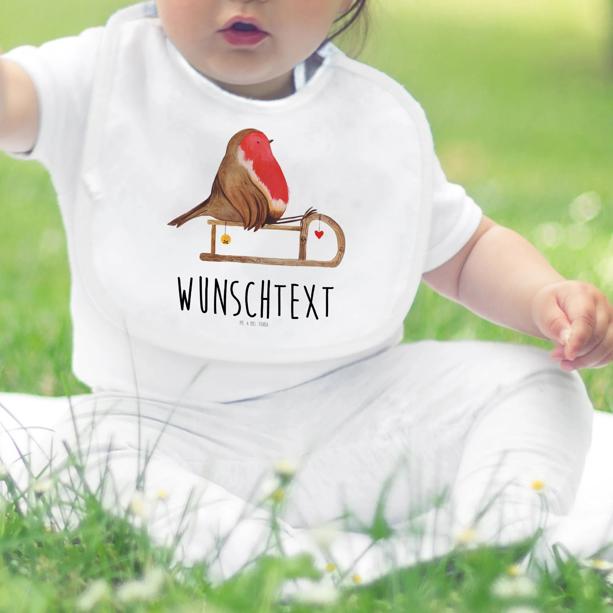 Personalisiertes Babylätzchen Rotkehlchen Schlitten