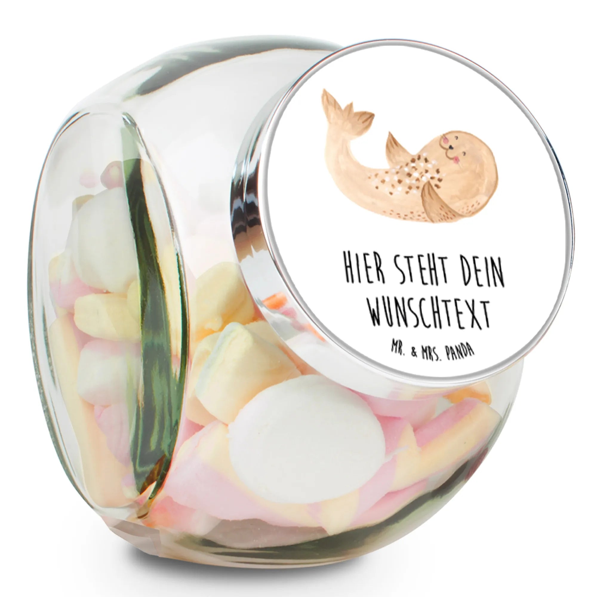 Spersonalizowany słoik na cukierki foka Leżeć - XL 2000ml - Biały