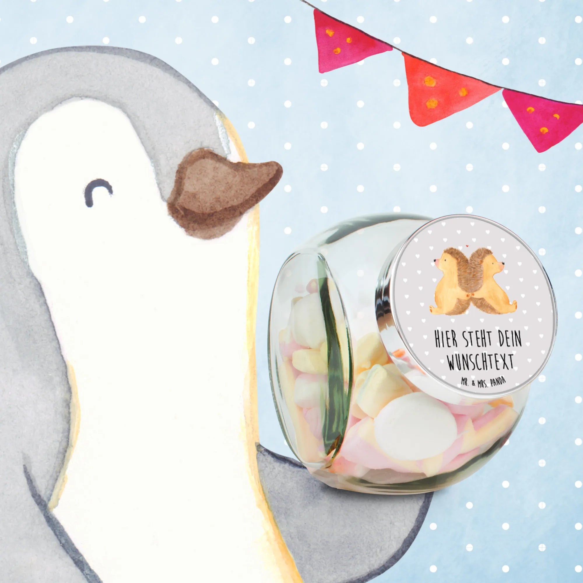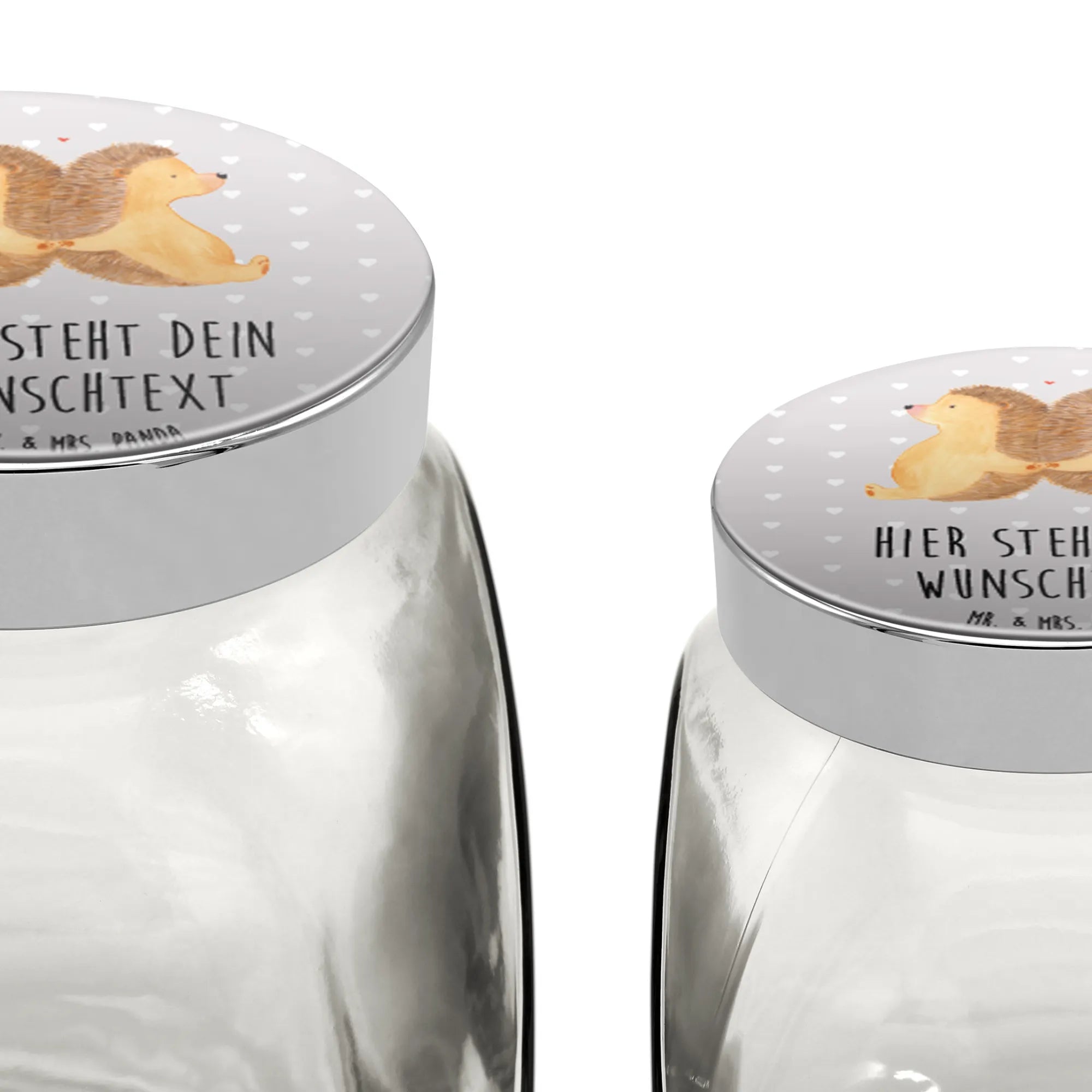 Spersonalizowany słoik na cukierki Jeże trzymające się za łapki - L 870ml - Pastelowy szary