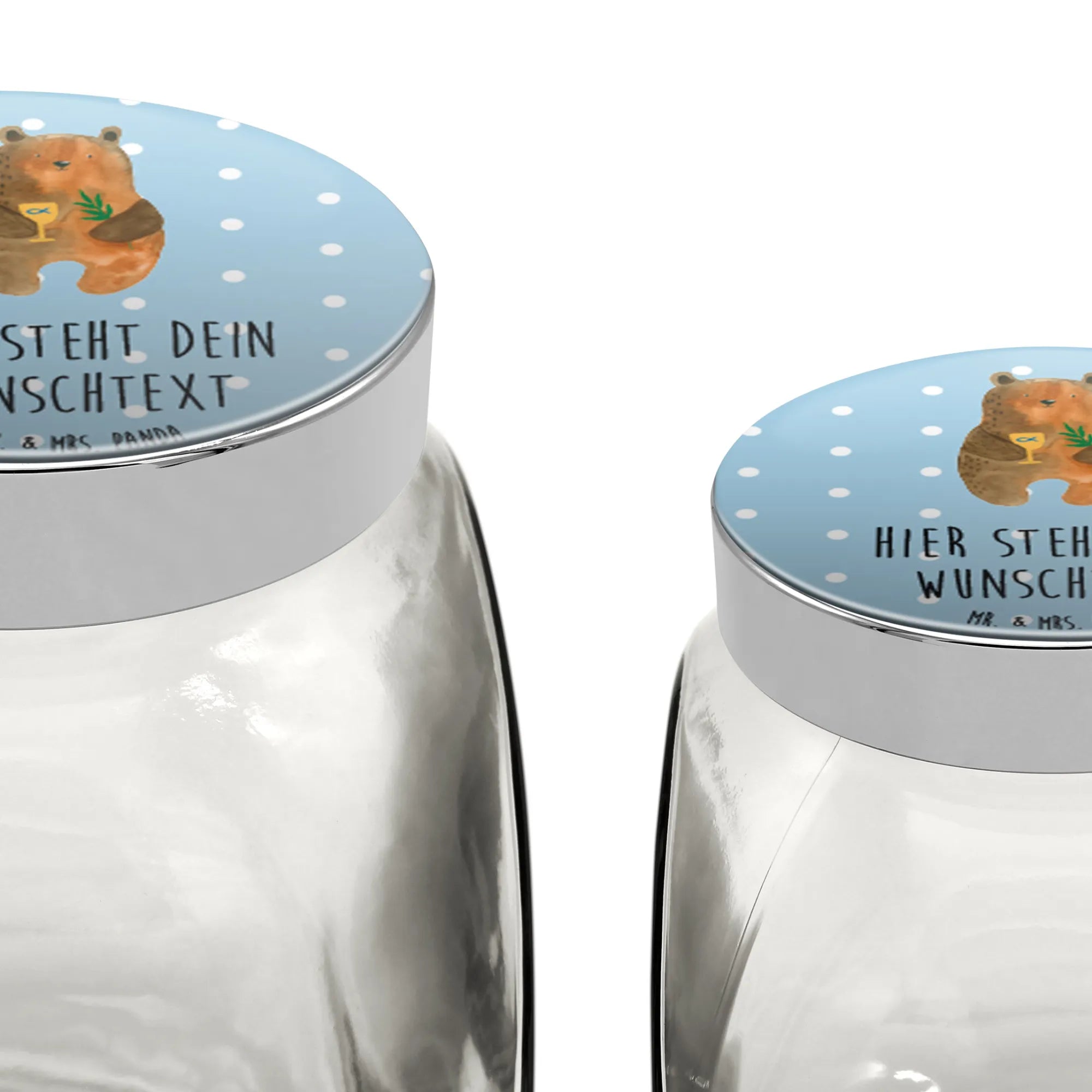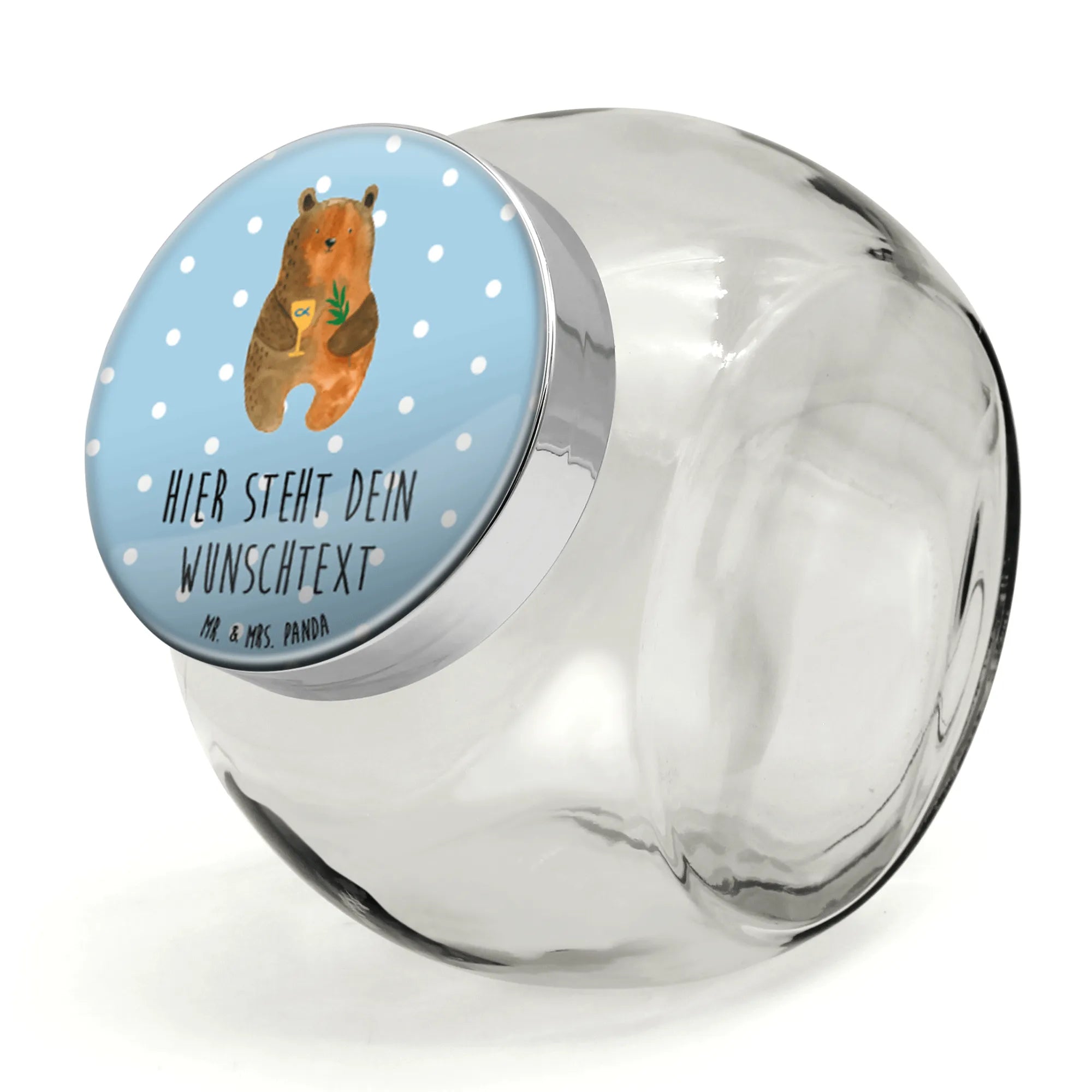Spersonalizowany słoik na cukierki niedźwiedź Bierzmowanie - L 870ml - Pastelowy niebieski