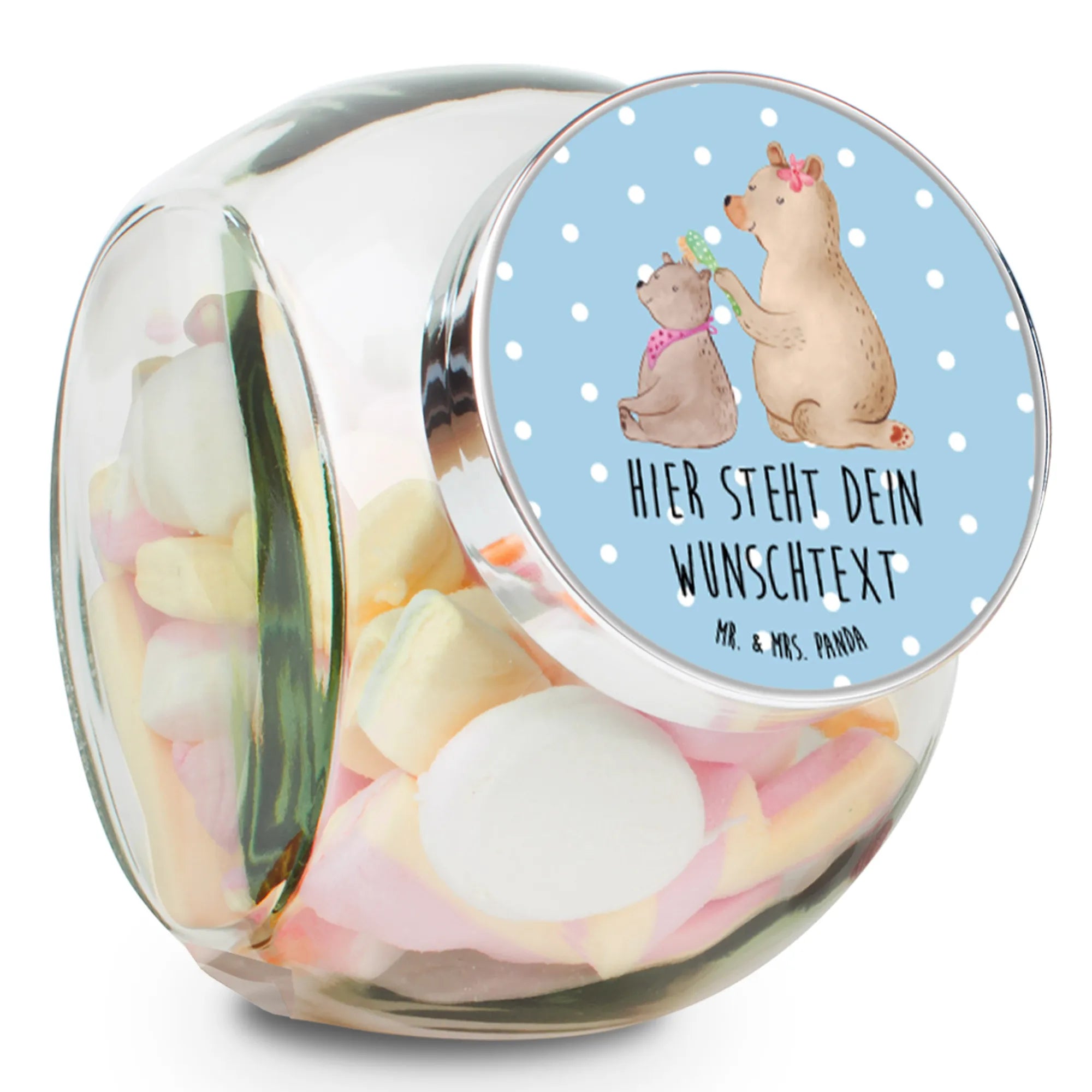 Spersonalizowany słoik na cukierki niedźwiedź dziecko - L 870ml - Pastelowy szary