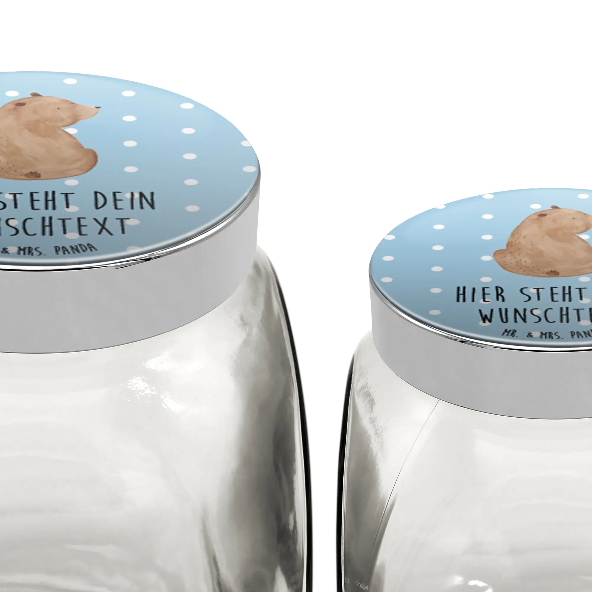 Das personalisierte Bonbonglas Bär Schulterblick von Mr. & Mrs. Panda ist das perfekte Geschenk für all diejenigen, die süße Leckereien lieben und Bärenfreunde sind!
