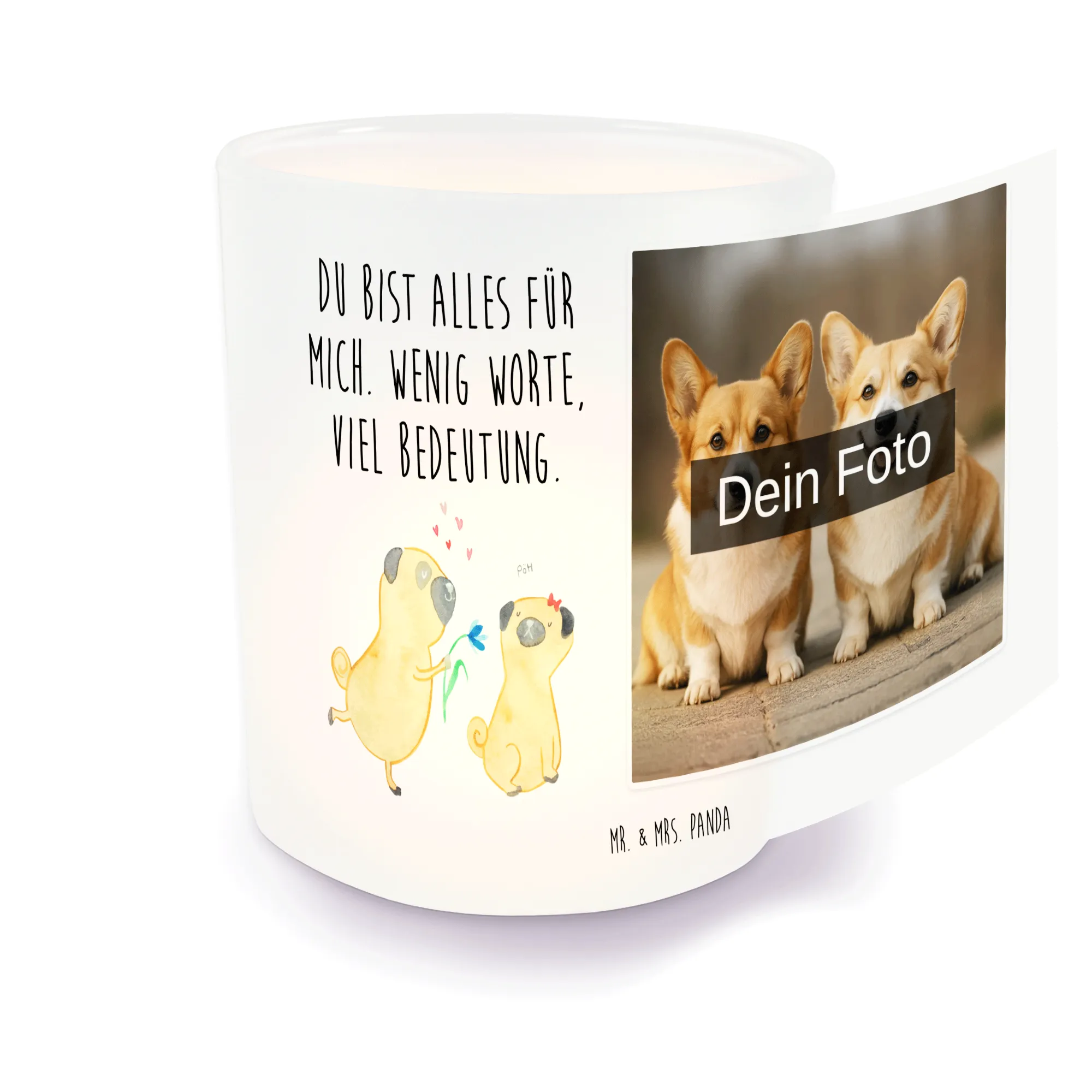 Spersonalizowany świecznik ze zdjęciem mops Zakochani