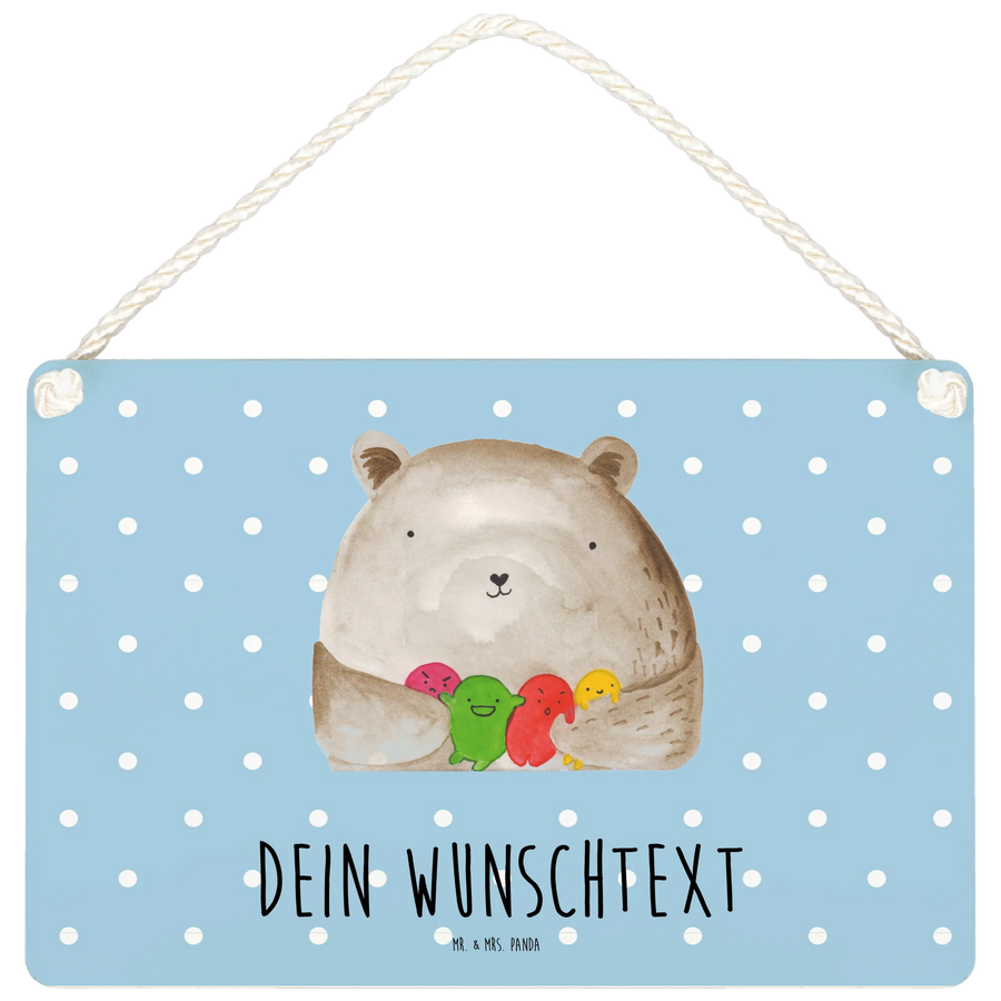 Personalisiertes Deko Schild Bär Gefühl - DIN A6 - Blau Pastell