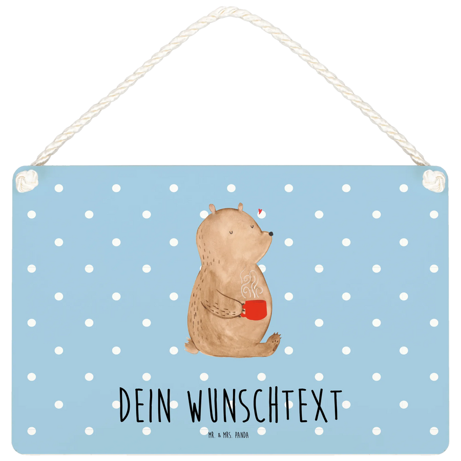 Personalisiertes Deko Schild Bär Kaffee - DIN A6 - Blau Pastell