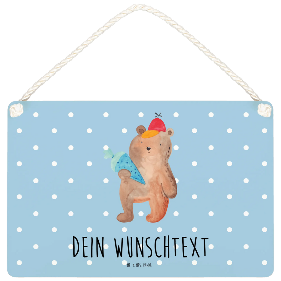 Personalisiertes Deko Schild Bär mit Schultüte - DIN A6 - Blau Pastell