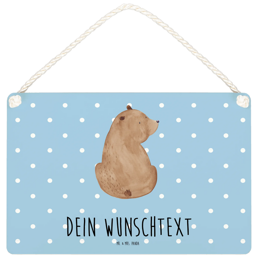 Personalisiertes Deko Schild Bär Schulterblick - DIN A6 - Blau Pastell