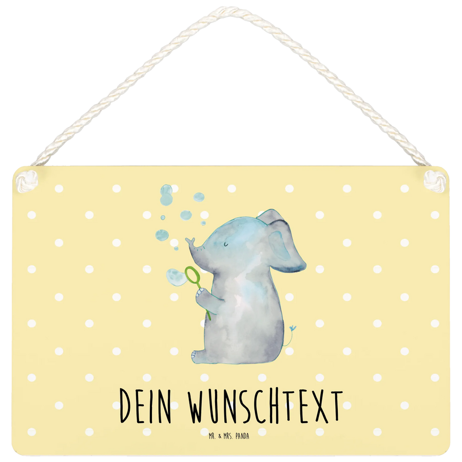 Personalisiertes Deko Schild Elefant Seifenblasen - DIN A6 - Gelb Pastell