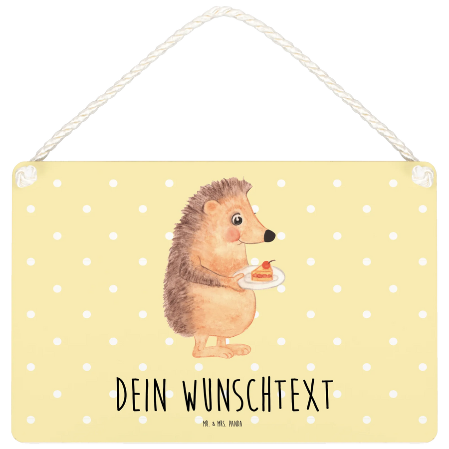 Personalisiertes Deko Schild Igel Kuchenstück - DIN A6 - Gelb Pastell