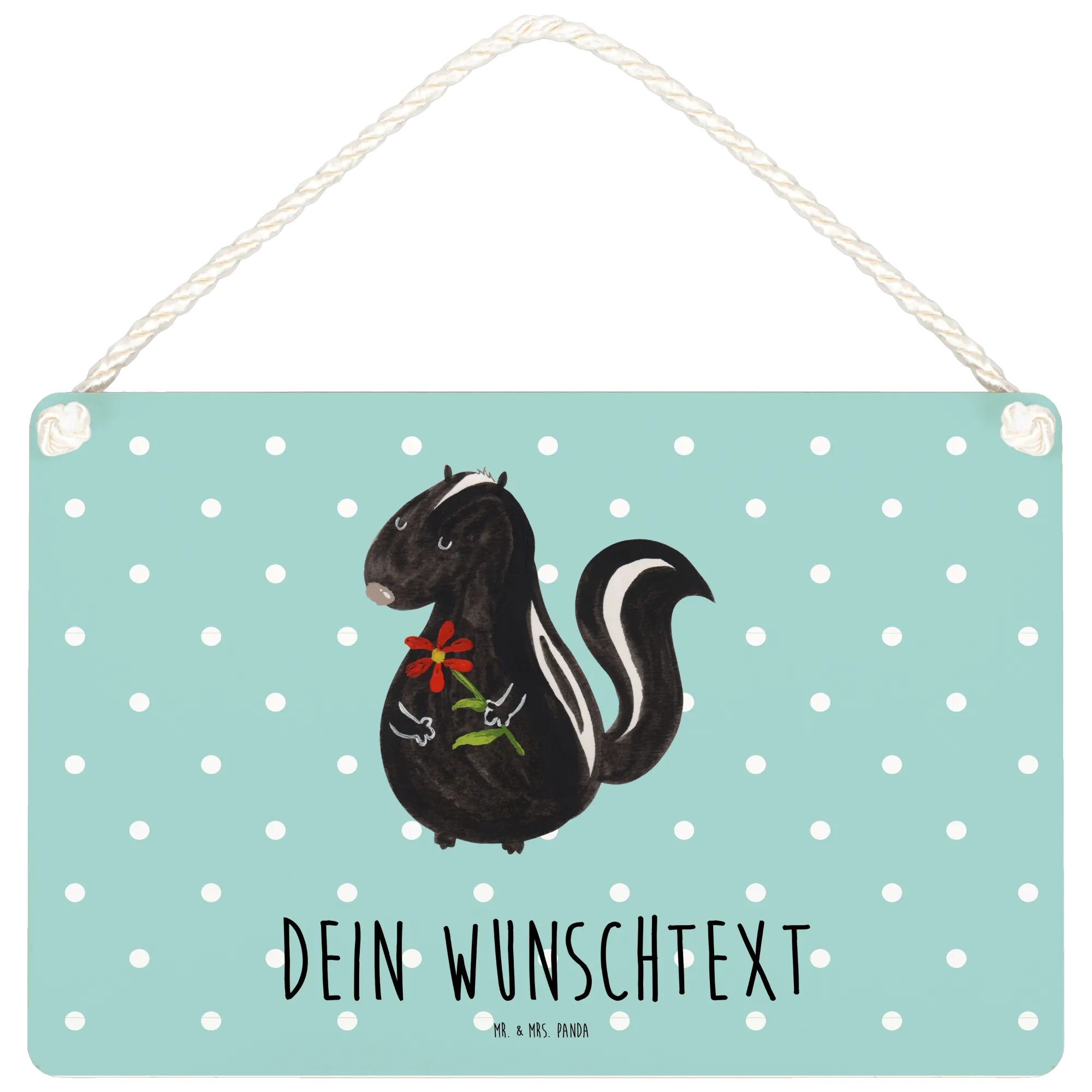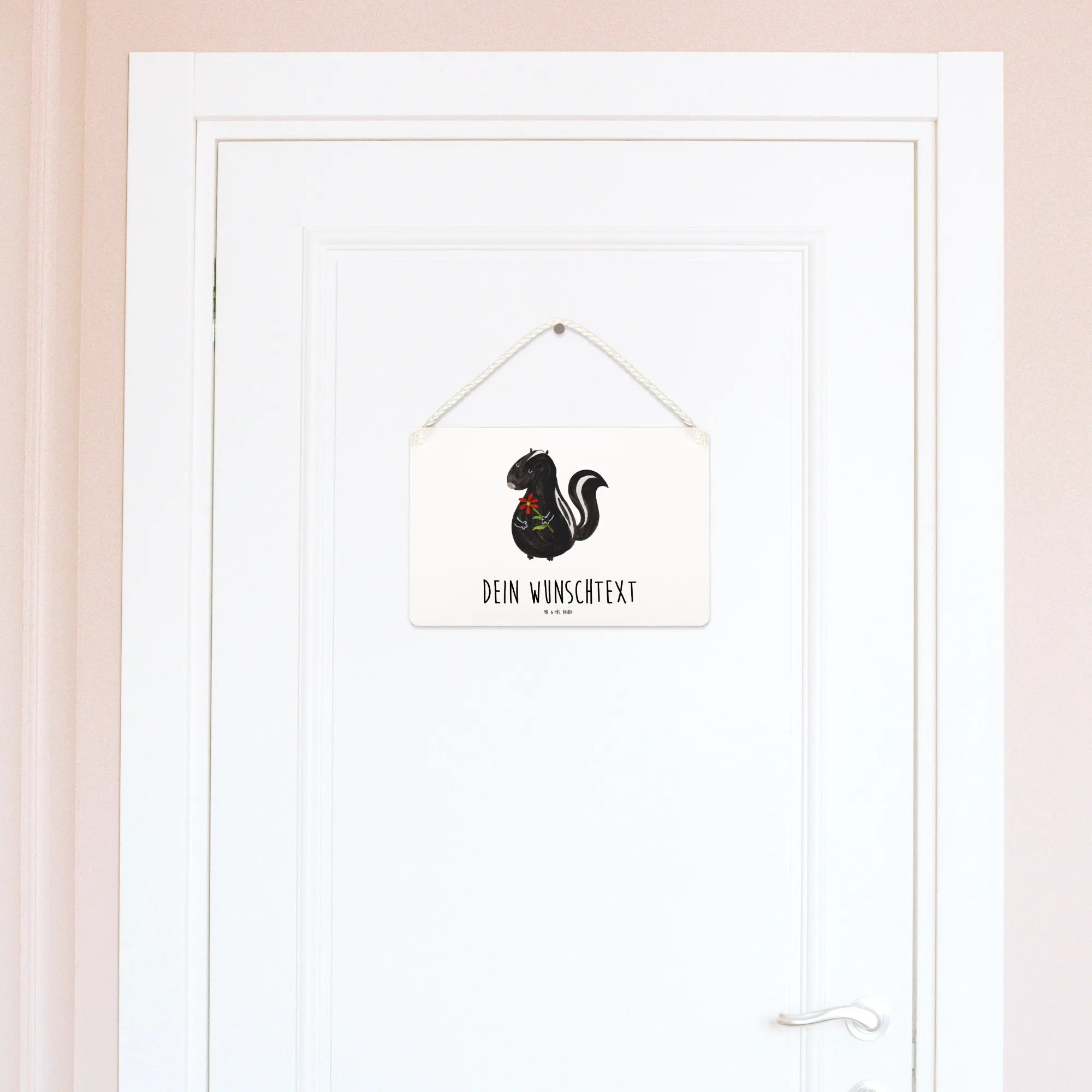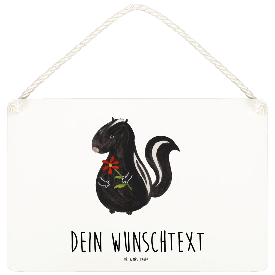 Das personalisierte Deko Schild "Stinktier Blume" aus der Stinktier-Kollektion von Mr. & Mrs. Panda ist die perfekte Zusammensetzung aus niedlichem Design und persönlicher Note. Die liebevolle Aquarellillustration zeigt ein süßes Stinktier mit einer wunderschönen Blumenkrone, die jeden Raum sofort zum Strahlen bringt.