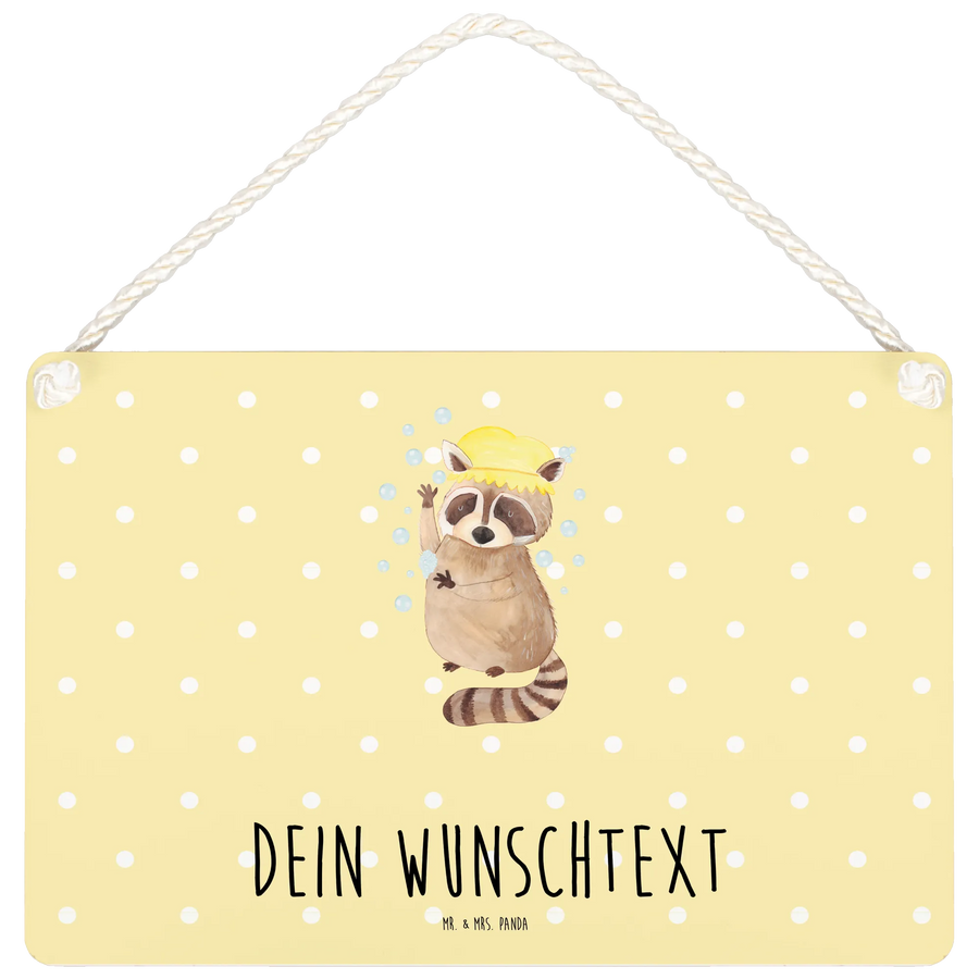Personalisiertes Deko Schild Waschbär - DIN A6 - Gelb Pastell