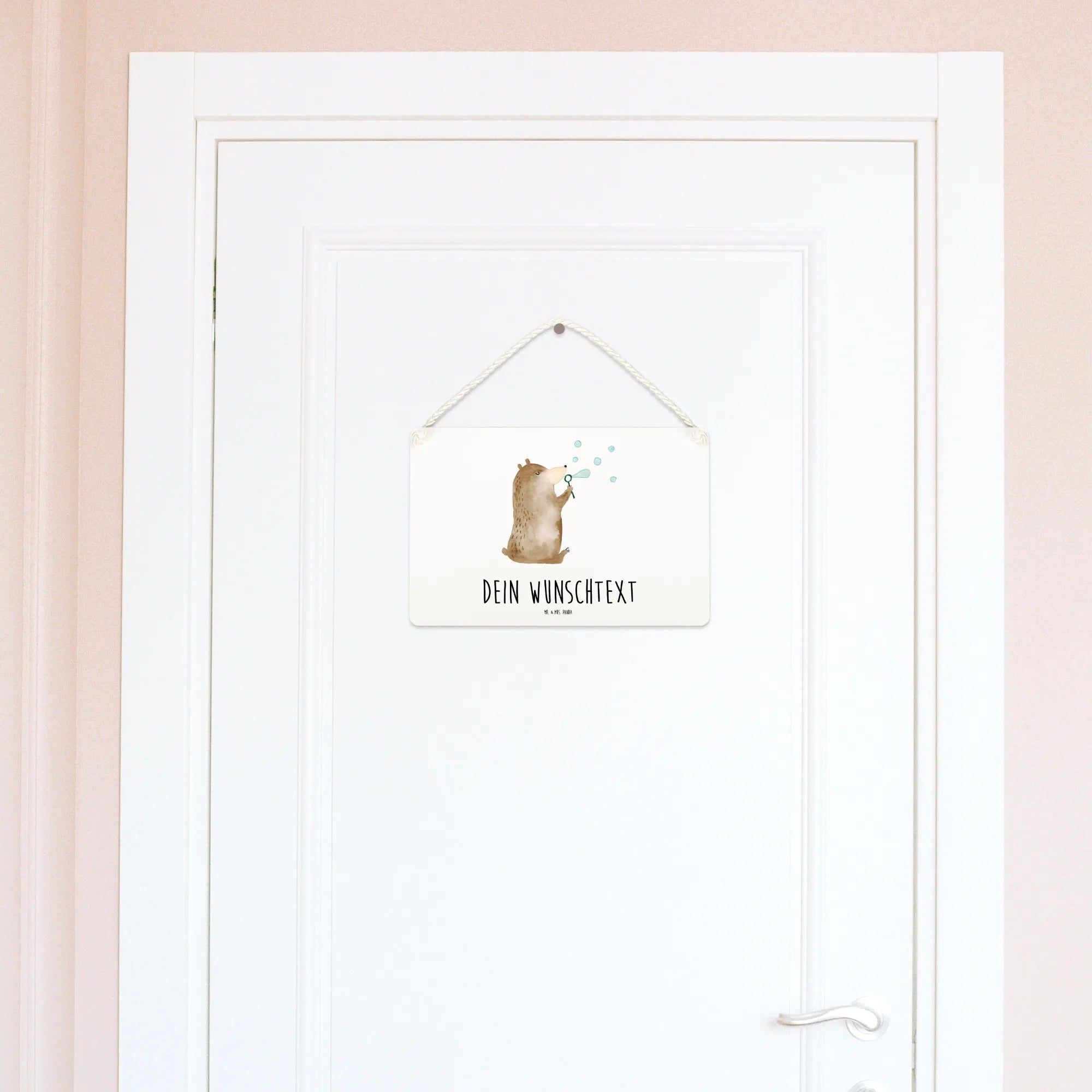 Spersonalizowany szyld dekoracyjny niedźwiedź bańki mydlane - DIN A6 - biały