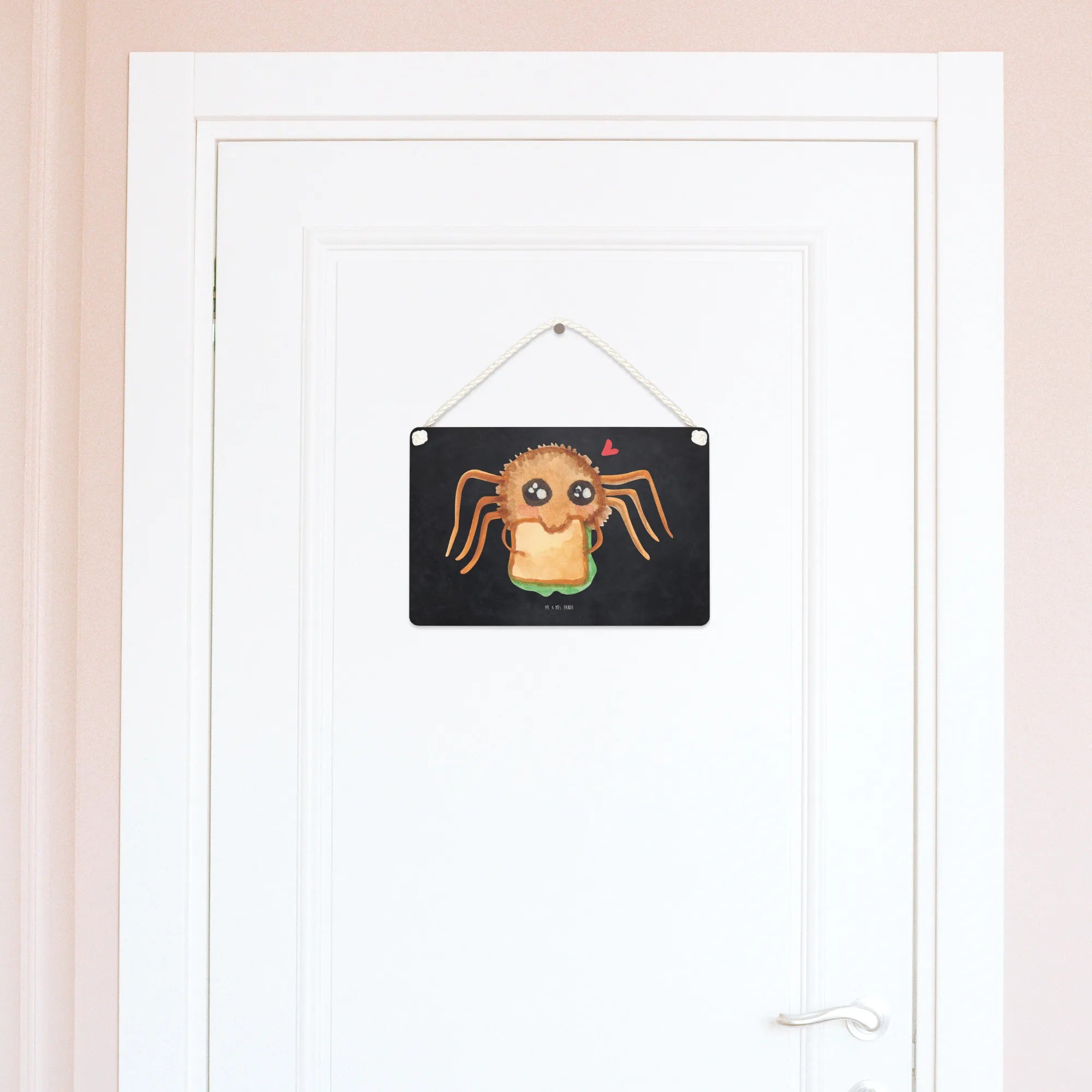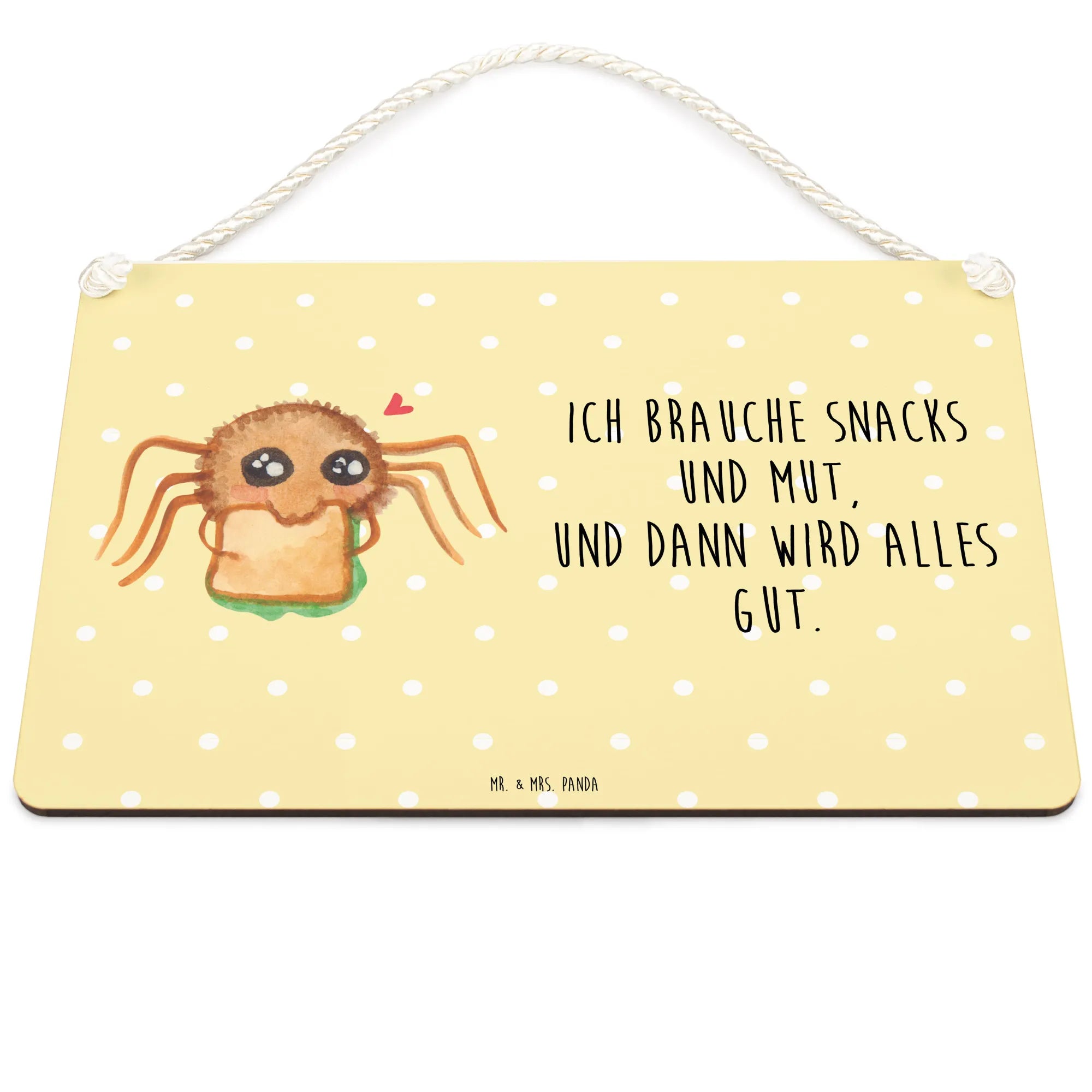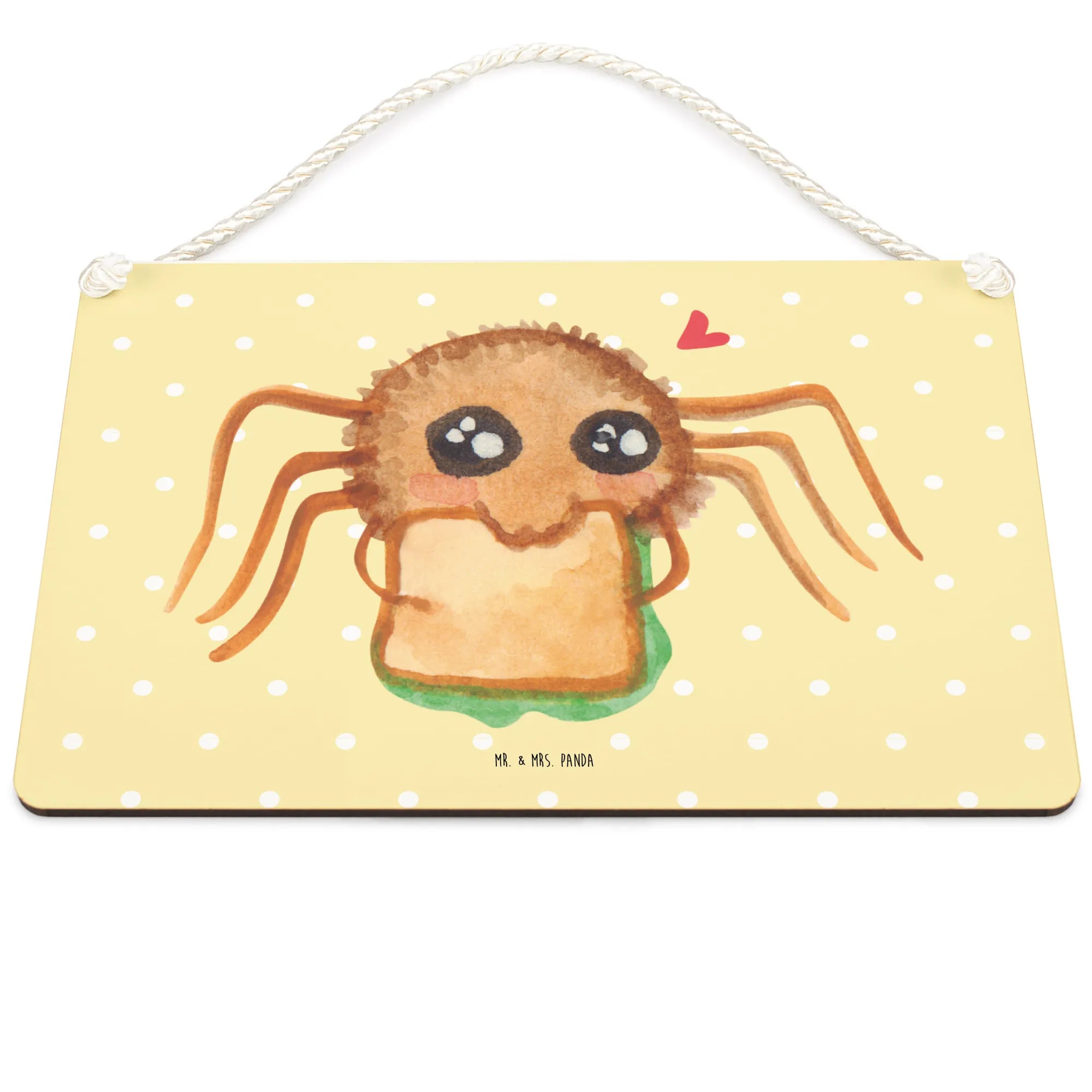 Dekoracyjny znak Pająk Agata kanapka - DIN A6 - z napisem - Pastelowy żółty