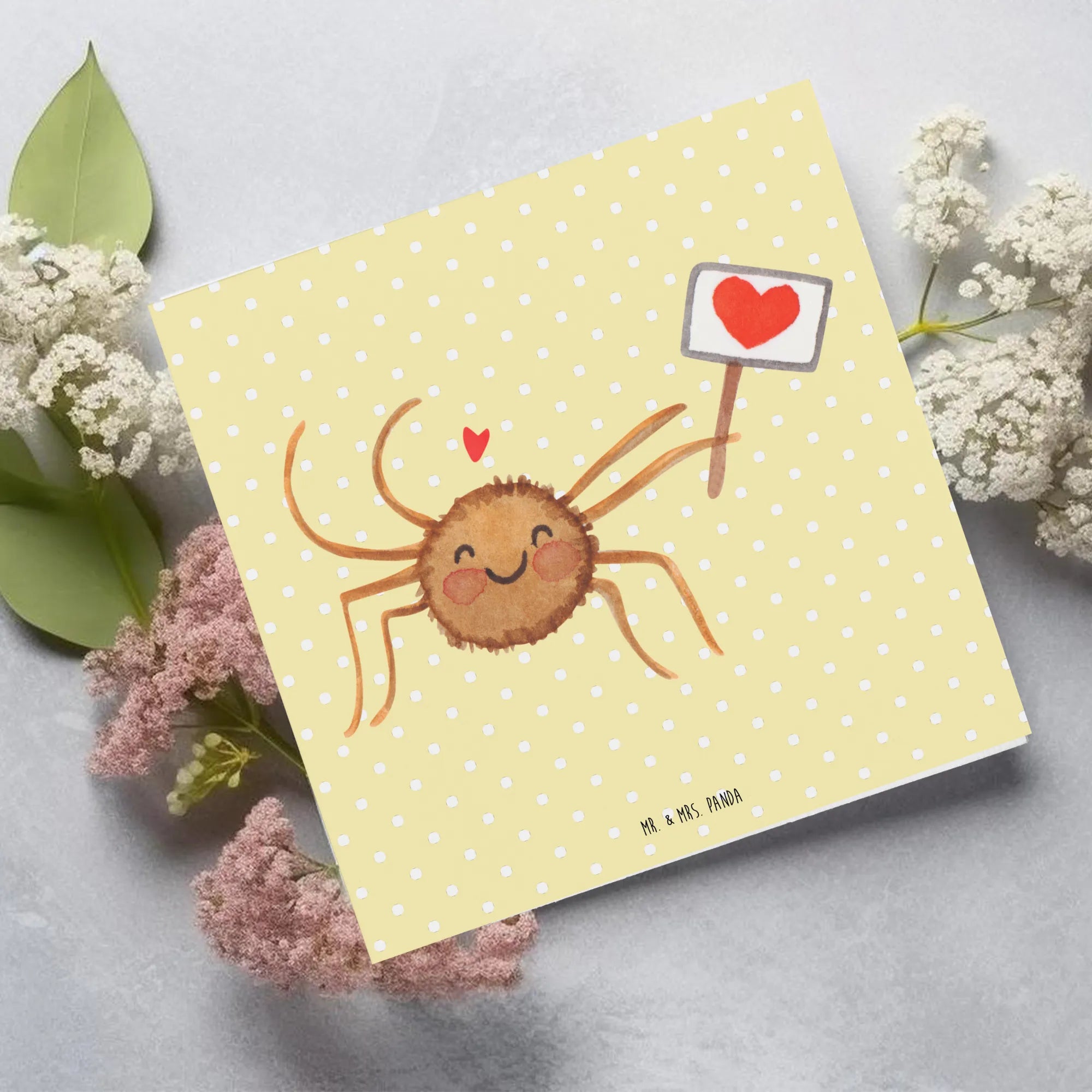 Die Deluxe Karte von Mr. & Mrs. Panda mit dem süßen Motiv der Spinne Agathe ist der perfekte Weg, um Deinen Lieben eine Freude zu machen. Ob Du Glückwünsche zum Geburtstag, zur Hochzeit oder einfach mal ein "Danke" senden möchtest – diese hochwertige Karte erstrahlt in wunderschönem Gelb und zieht durch ihr motivierendes Design sofort die Aufmerksamkeit auf sich.