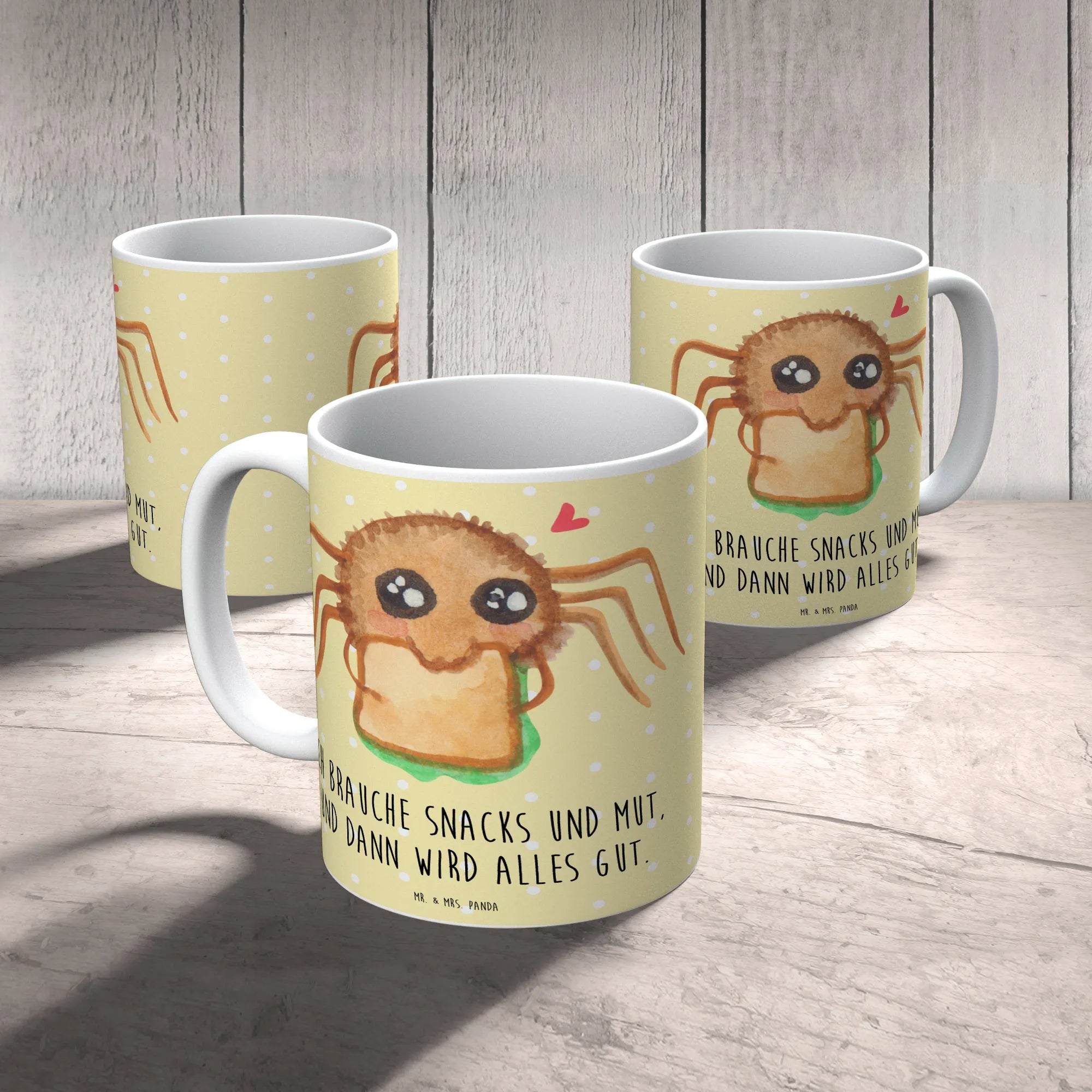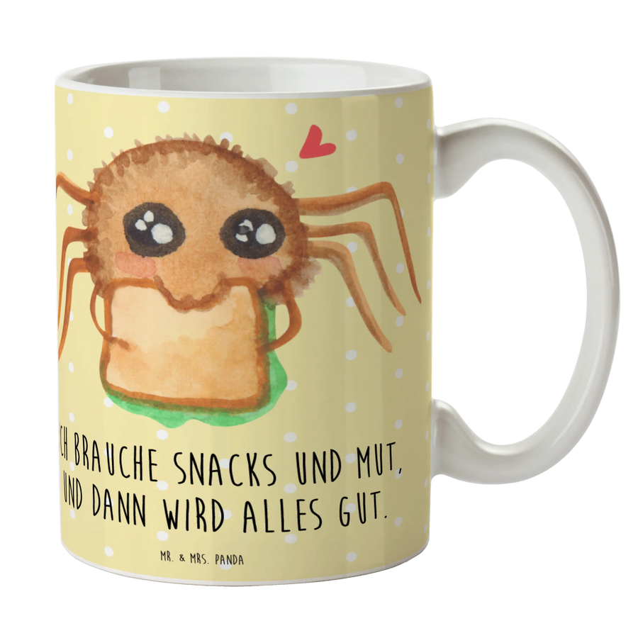 Kubek Pająk Agata kanapka - z napisem - Pastelowy żółty