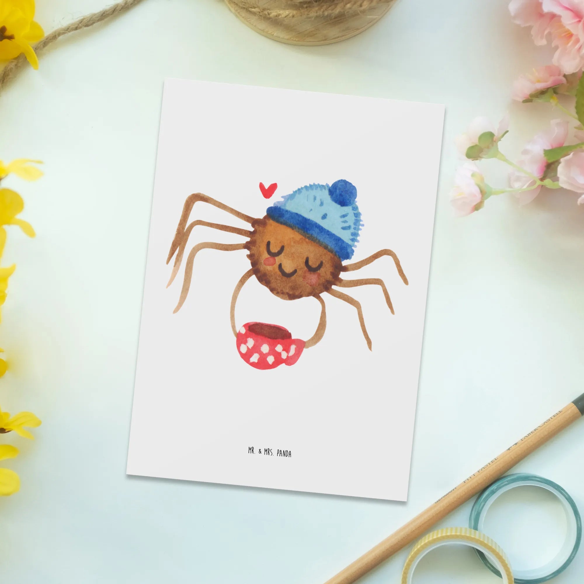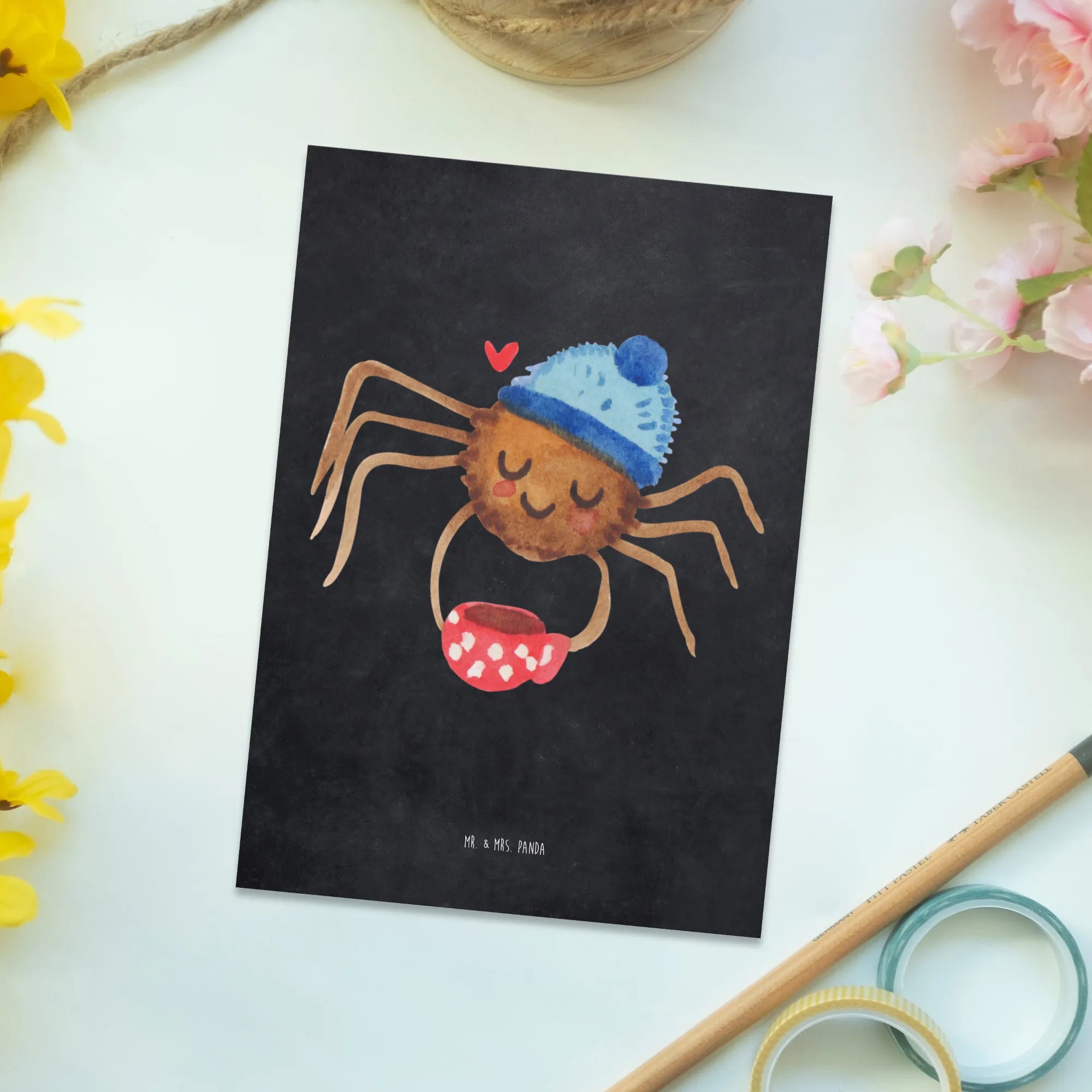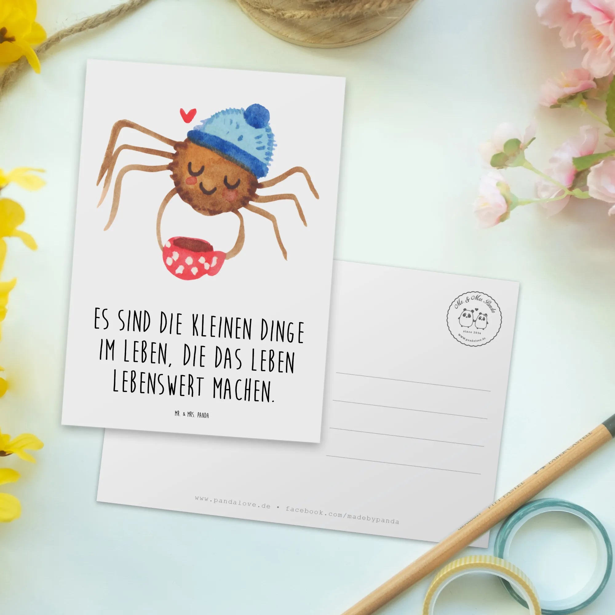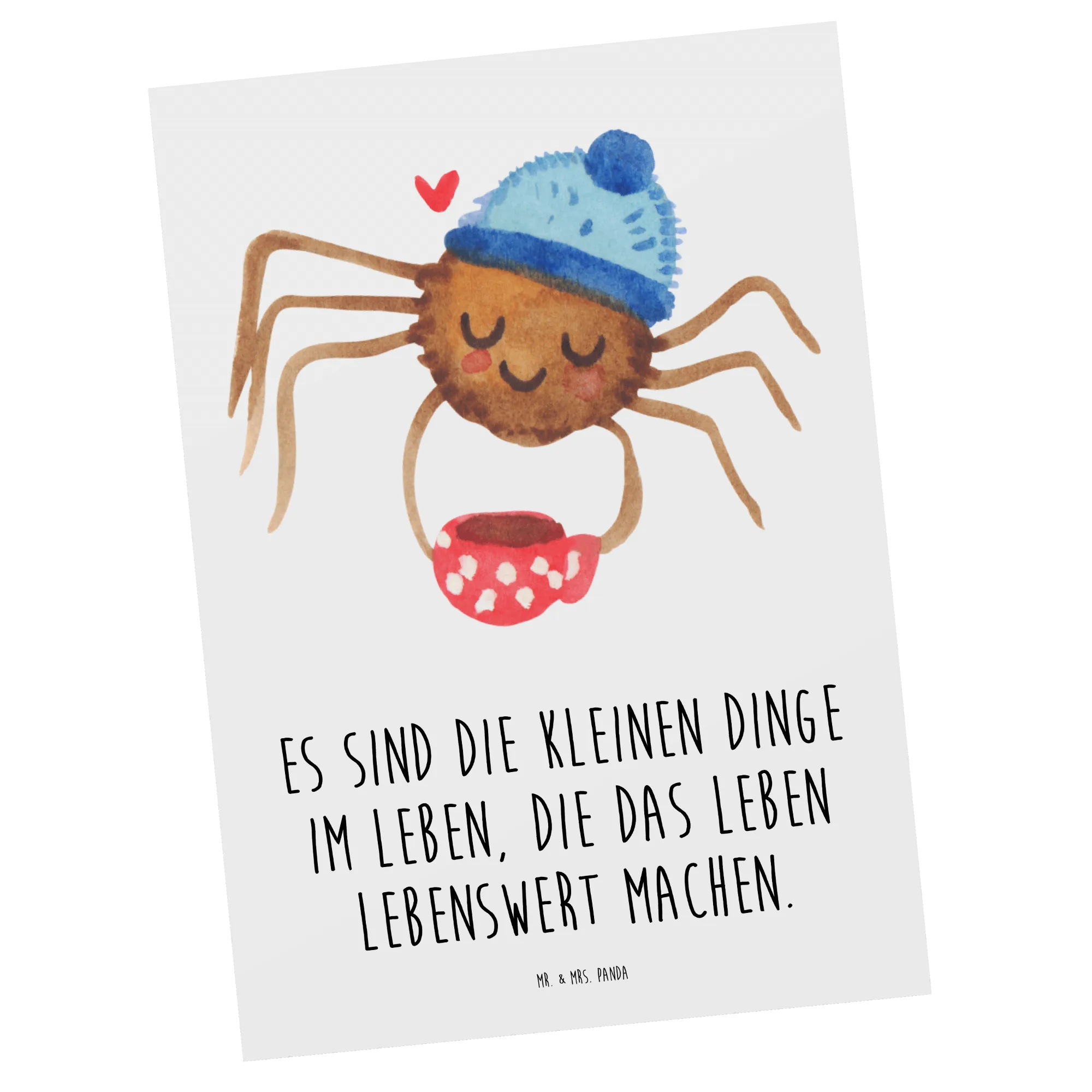 Diese Postkarten sind perfekt, um dein eigenes Leben mit Freude zu bereichern oder um anderen eine kleine Portion Glück zu schenken. Also, warte nicht zu lange und hole dir die "Spinne Agathe Kaffee" Postkarte von Mr. & Mrs. Panda – die perfekte Grußkarte für alle, die die kleinen Dinge im Leben lieben!
