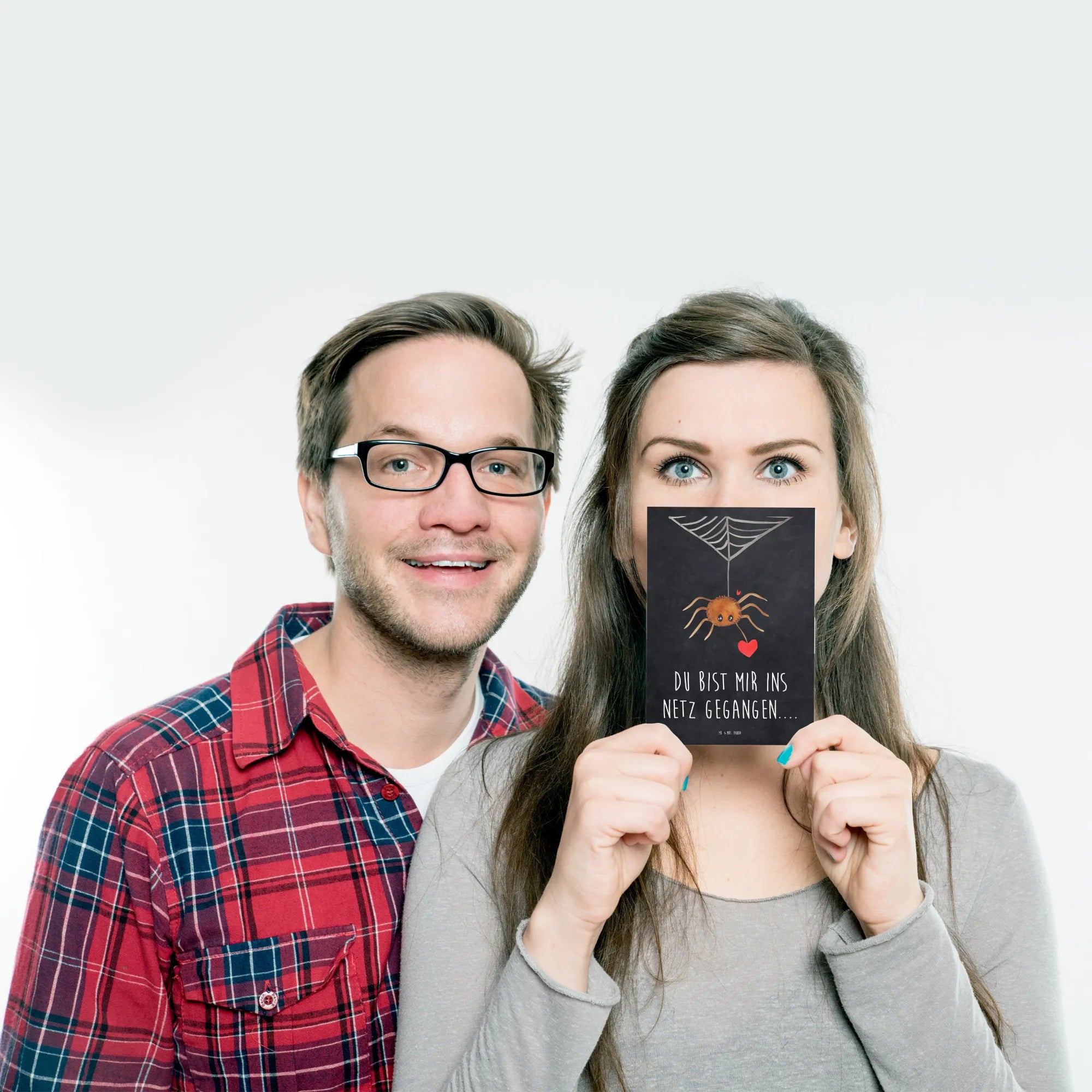 Du bist auf der Suche nach einem originellen Liebesgeschenk? Dann ist die Postkarte "Spinne Agathe Liebe" aus der einzigartigen Kollektion von Mr. & Mrs. Panda genau das Richtige für dich! Diese charmante Karte zeigt die süße Spinne Agathe, die an ihrem Netz hängt und mit einem Herz verziert ist – ein wahrhaft bezaubernder Anblick, der dein Herz höher schlagen lässt. Mit dem liebevollen Spruch "Du bist mir ins Netz gegangen...." ist diese Karte nicht nur dekorativ, sondern auch eine wundervolle Möglichkeit, deine Gefühle auszudrücken.