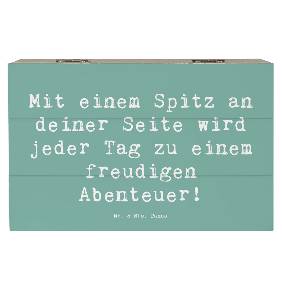 Die wunderschöne Holzkiste von Mr. & Mrs. Panda mit einem liebevollen Spitz-Motiv ist das perfekte Geschenk für alle Hundefans und hat noch dazu einen einzigartigen Spruch: "Mit einem Spitz an deiner Seite wird jeder Tag zu einem freudigen Abenteuer!" Diese Erinnerungskiste ist aus robuster Premium Hartfaser gefertigt und bietet ausreichend Platz für all deine wertvollen Schätze.
