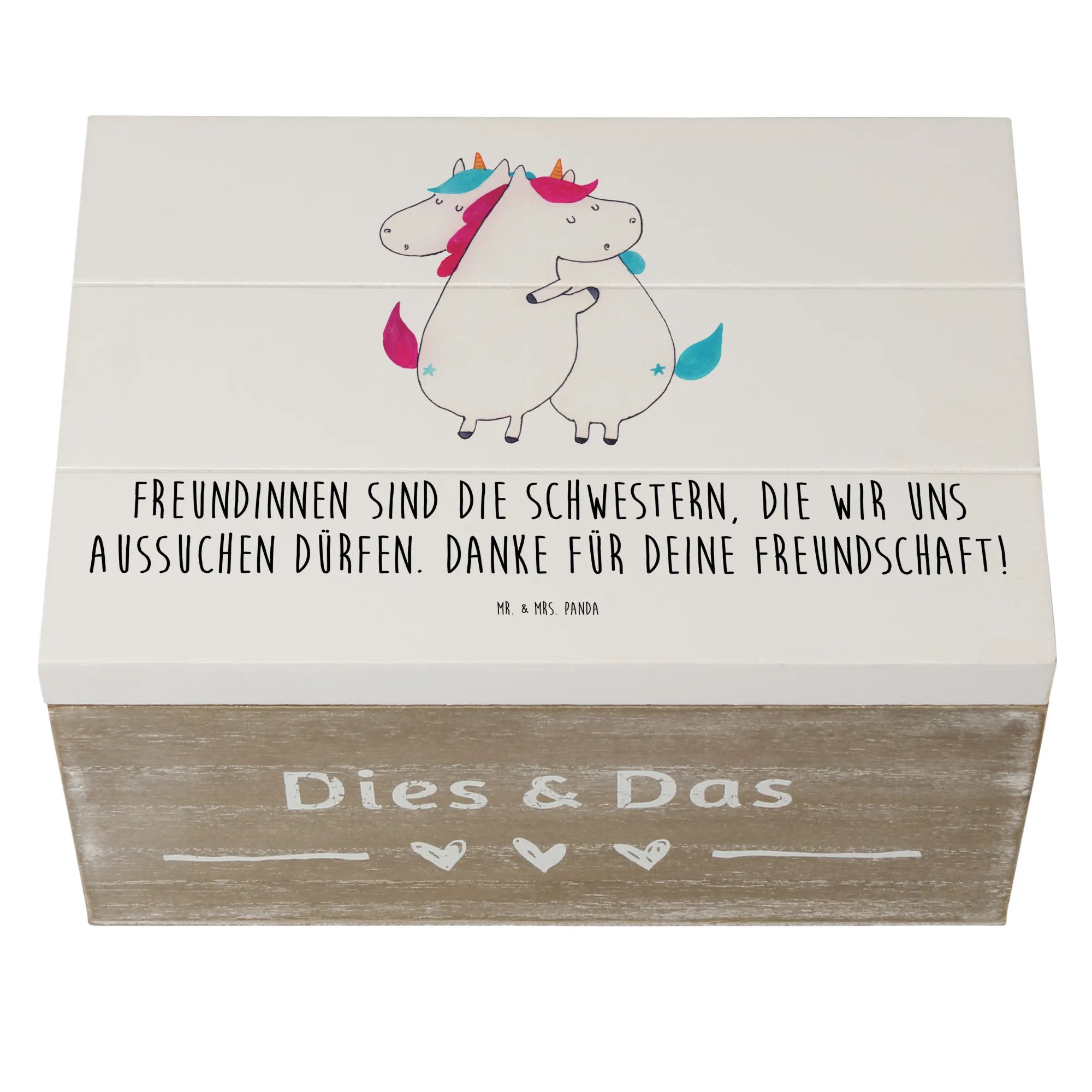 \nDas besondere Highlight dieser Kiste ist der liebevoll gestaltete Slogan: "Freundinnen sind die Schwestern, die wir uns aussuchen dürfen. Danke für deine Freundschaft!" – ein schöner Ausdruck der Dankbarkeit, der jeder Freundin ein Lächeln ins Gesicht zaubert. Egal, ob zum Geburtstag, zu einem Jubiläum oder einfach als kleine Aufmerksamkeit zwischendurch – diese Holzkiste wird mit Sicherheit zum gesprochenen Dankeschön und zeigt, wie viel dir die Freundschaft bedeutet.