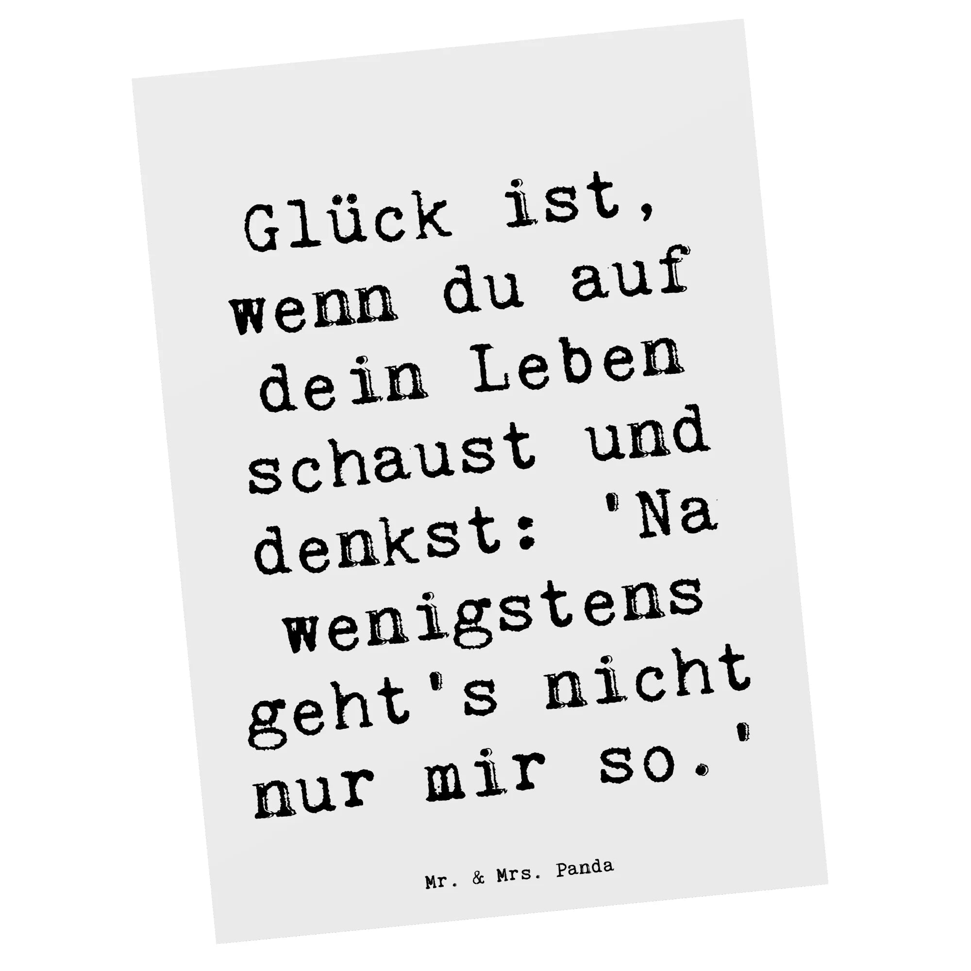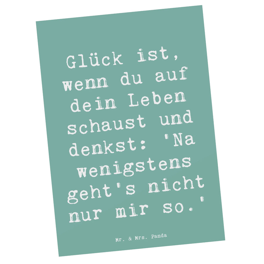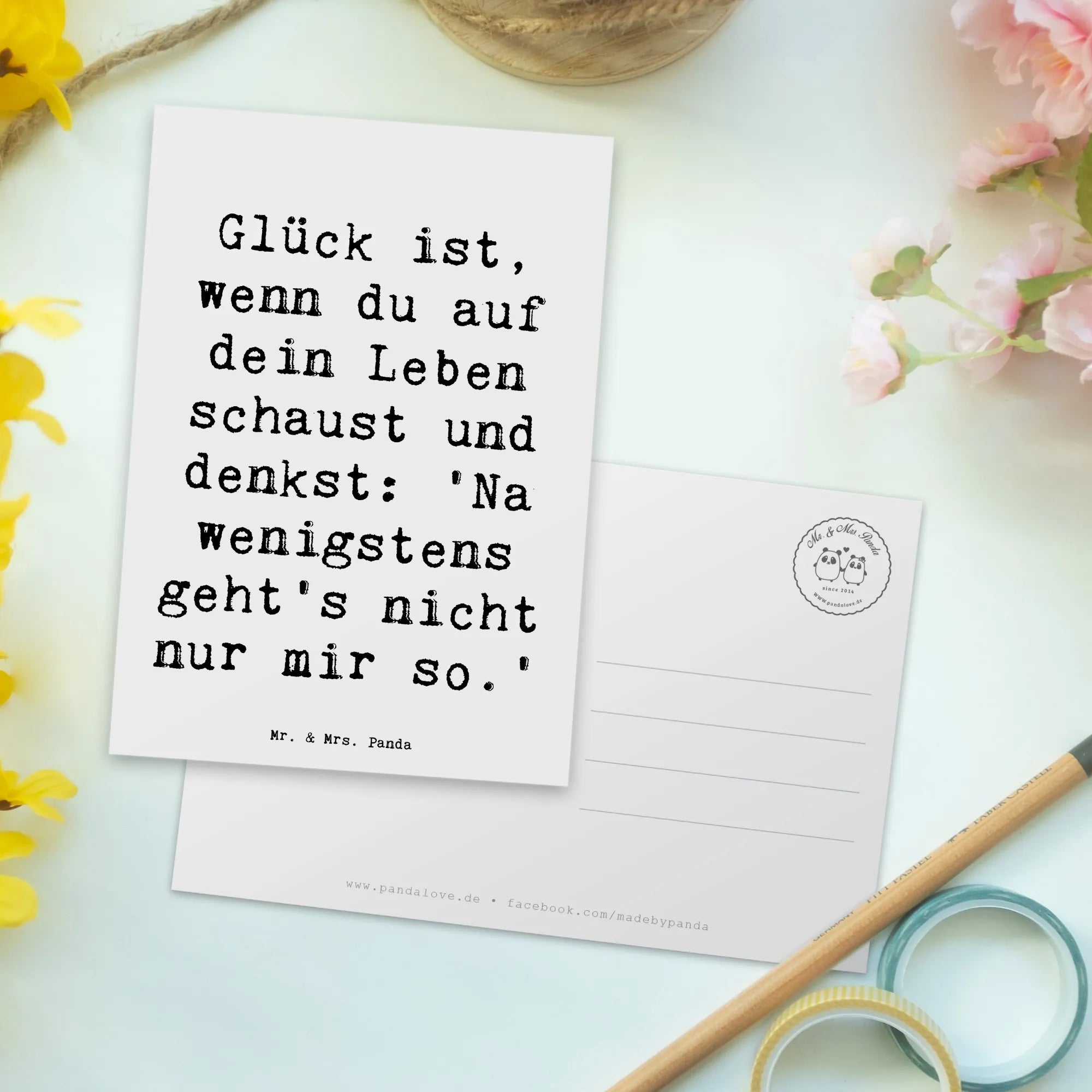 Der Spruch 'Glück ist, wenn du auf dein Leben schaust und denkst: 'Na wenigstens geht's nicht nur mir so.' lädt zum Schmunzeln ein und erinnert uns daran, dass wir alle in ähnlichen Boots sitzen und gemeinsam Freude und Herausforderungen erleben.
