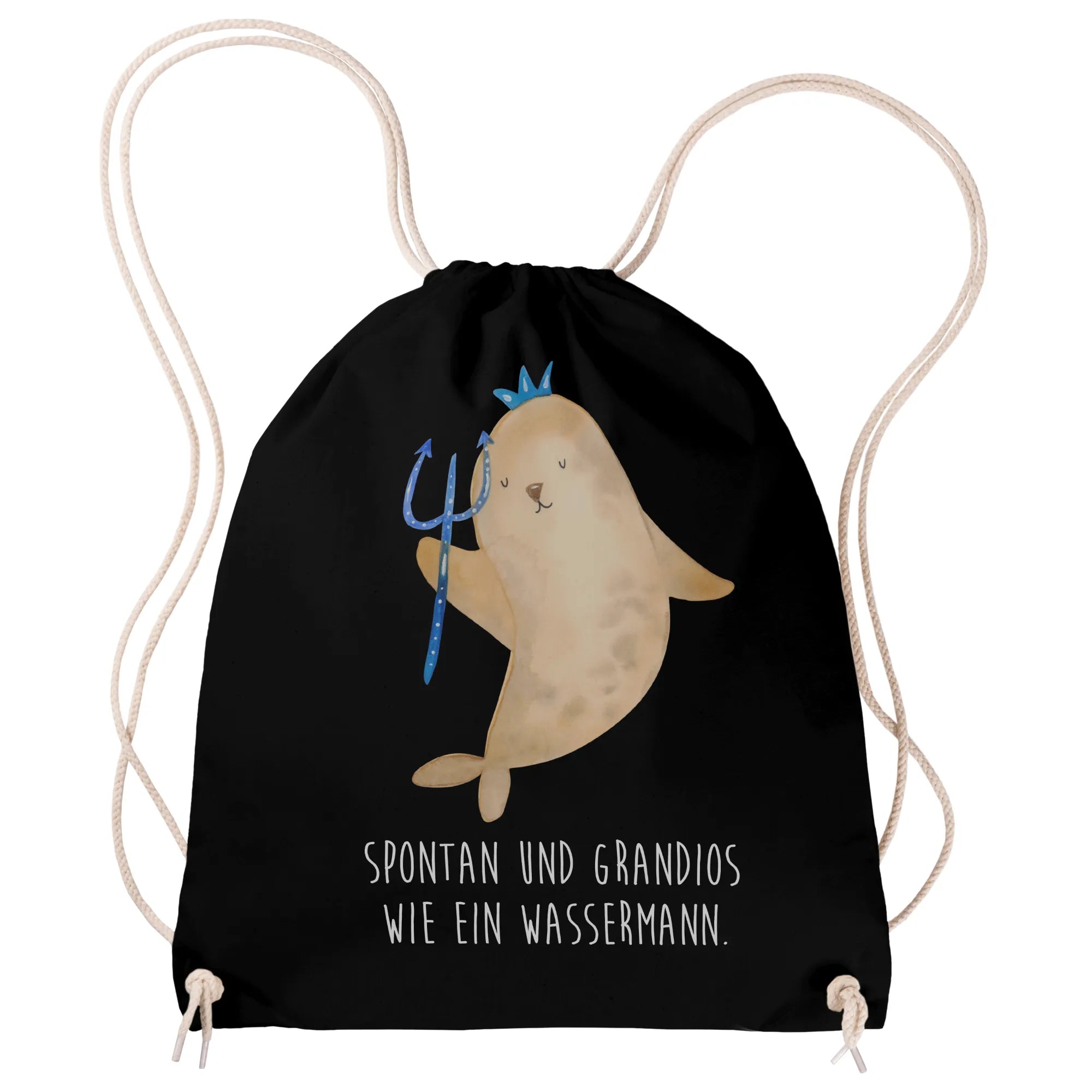 Torba sportowa znak zodiaku Wodnik - z napisem - Czarny