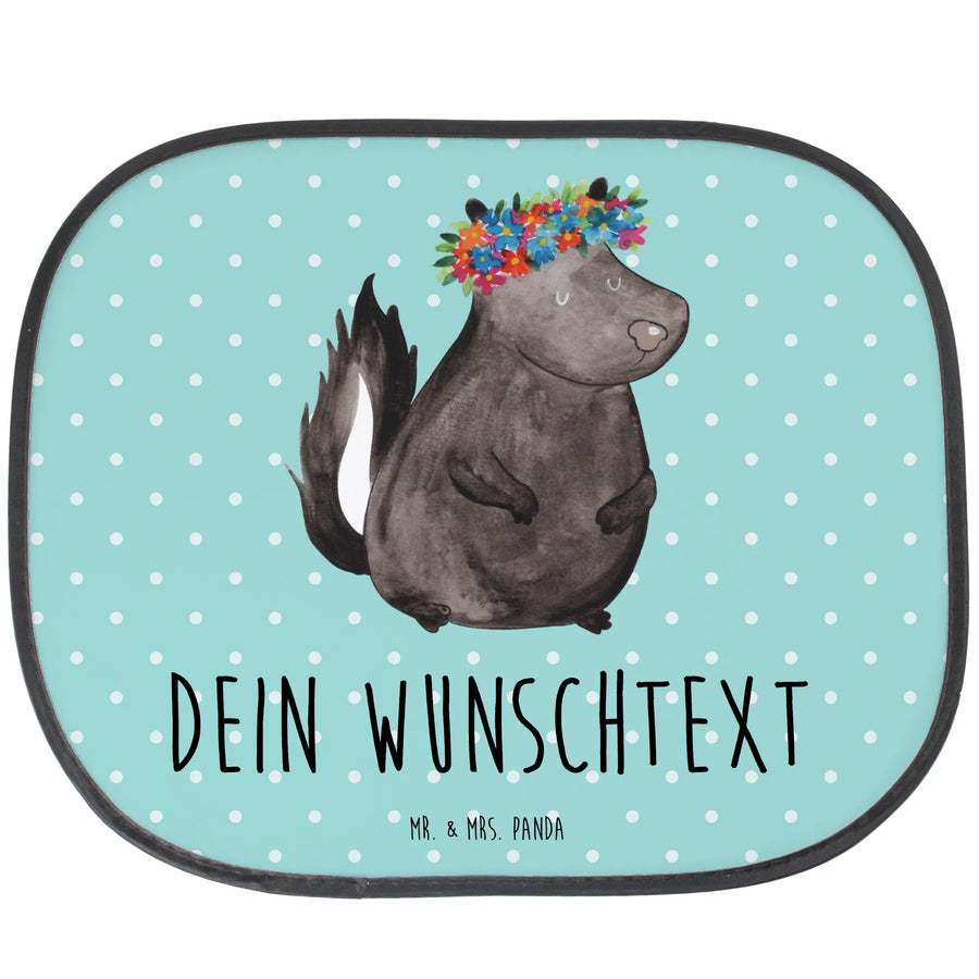 Der personalisierte Auto Sonnenschutz Stinktier Blumenmädchen von Mr. & Mrs. Panda ist die perfekte Lösung, um den Fahrzeuginsassen vor direkter Sonneneinstrahlung und unangenehmer Hitze zu schützen. Mit den Abmessungen von 440 mm x 380 mm passt er perfekt auf jede Autoscheibe und bringt gleichzeitig einen Hauch von Farbe und Freude in dein Auto.